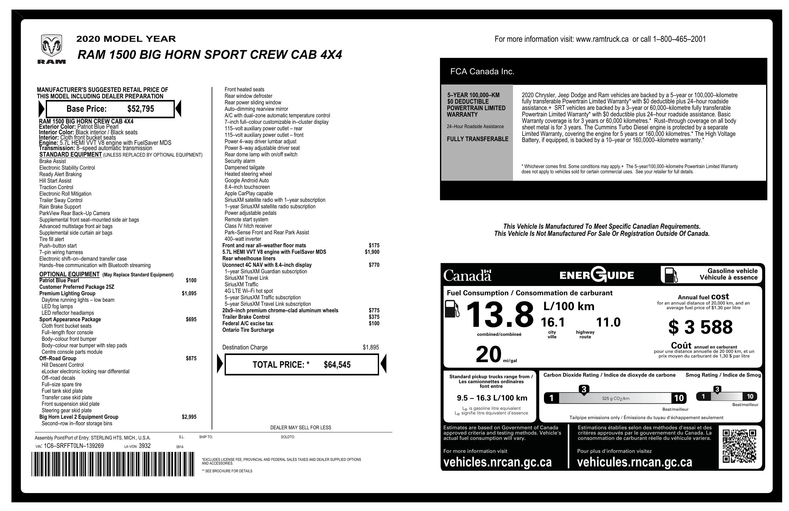 2020 Ram 1500 4x4 Crew Cab 5'7" Box
