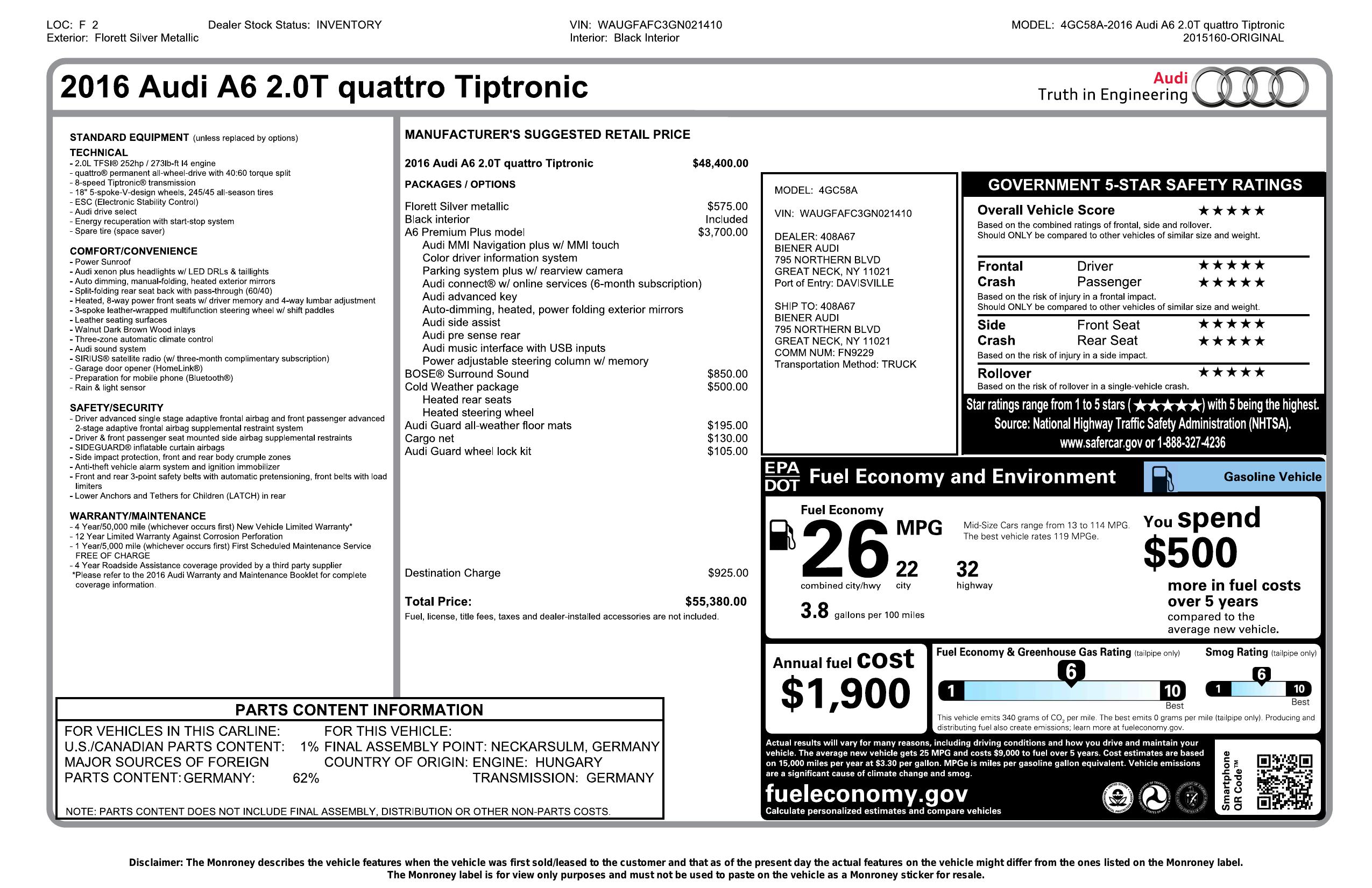 2016 Audi A6 4dr Sdn Quattro 2.0 T Premium Plus