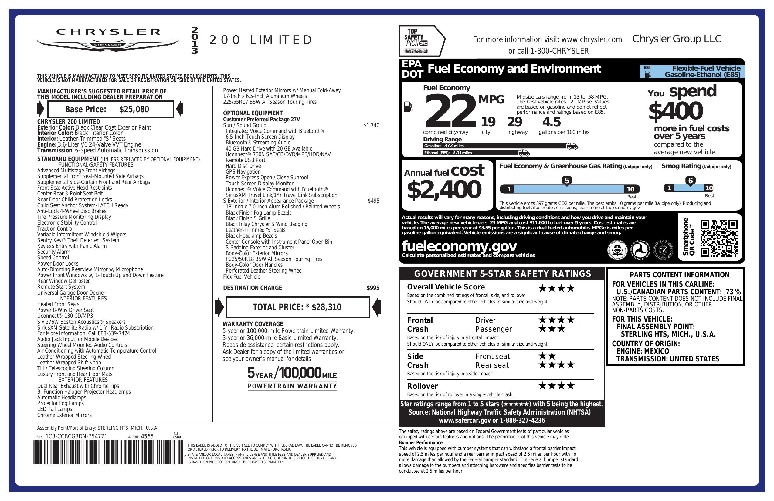 2013 Chrysler 200 4dr Sdn Limited