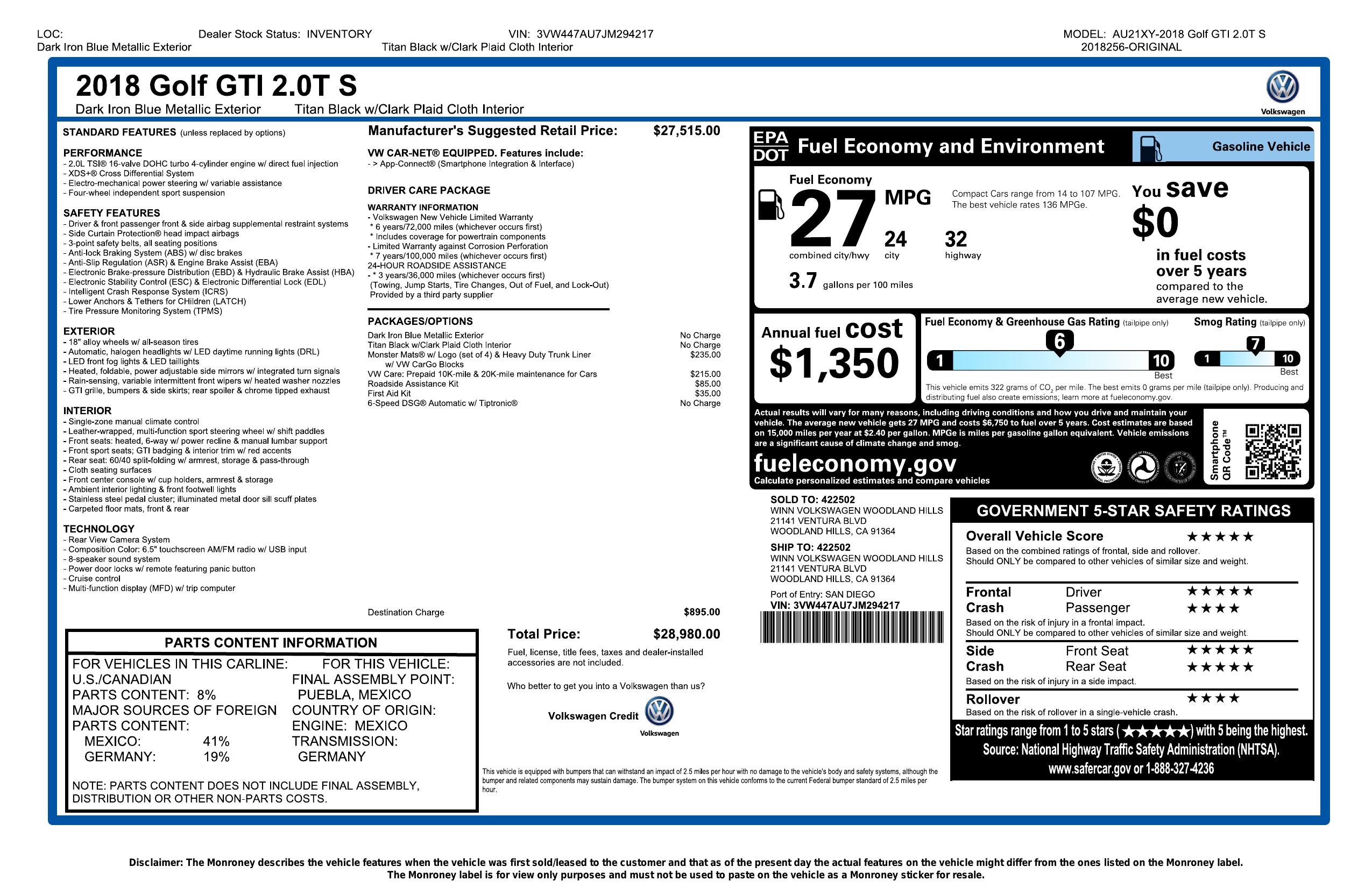 2018 Volkswagen Golf Gti 2.0 T Dsg