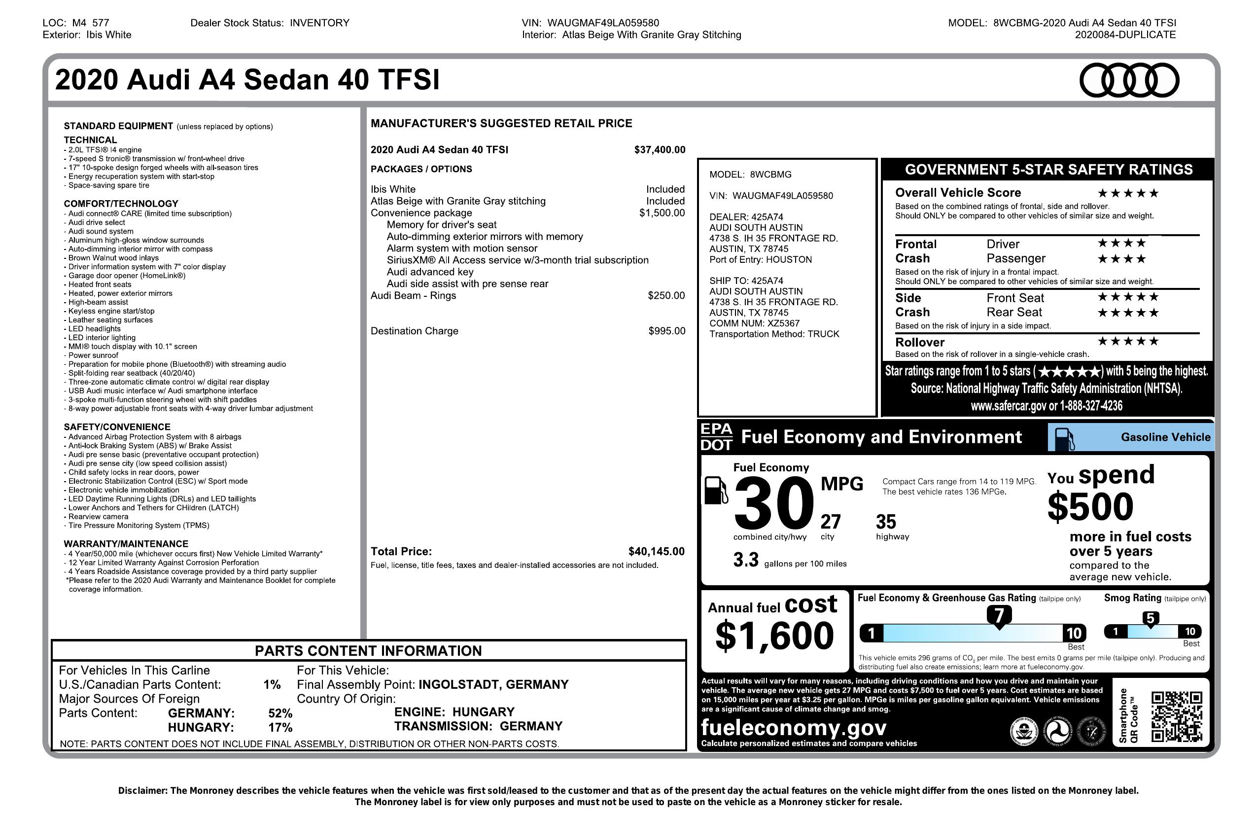 2020 Audi A4 Sedan Premium 40 Tfsi