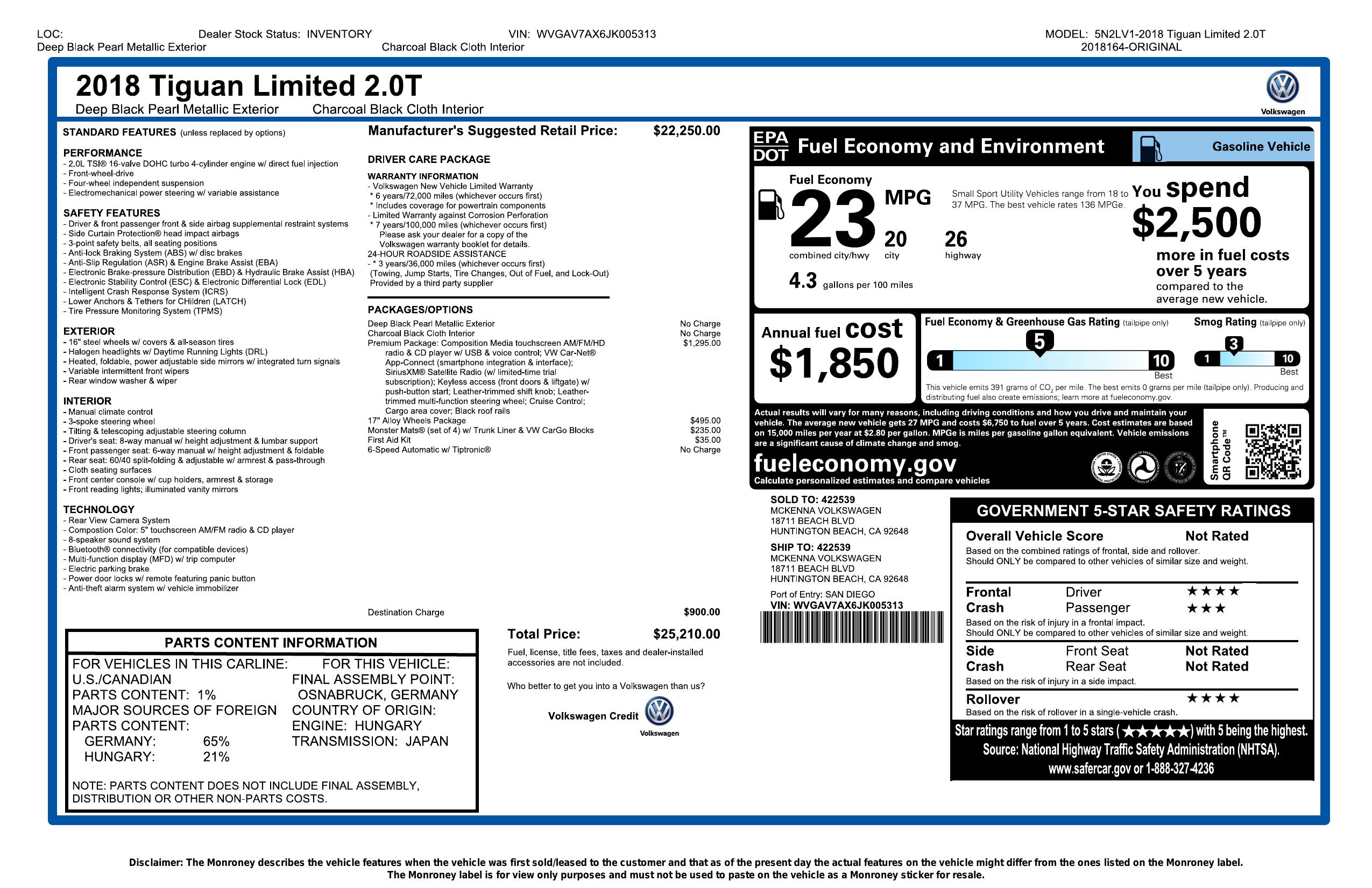 2018 Volkswagen Tiguan Limited 2.0 T Fwd