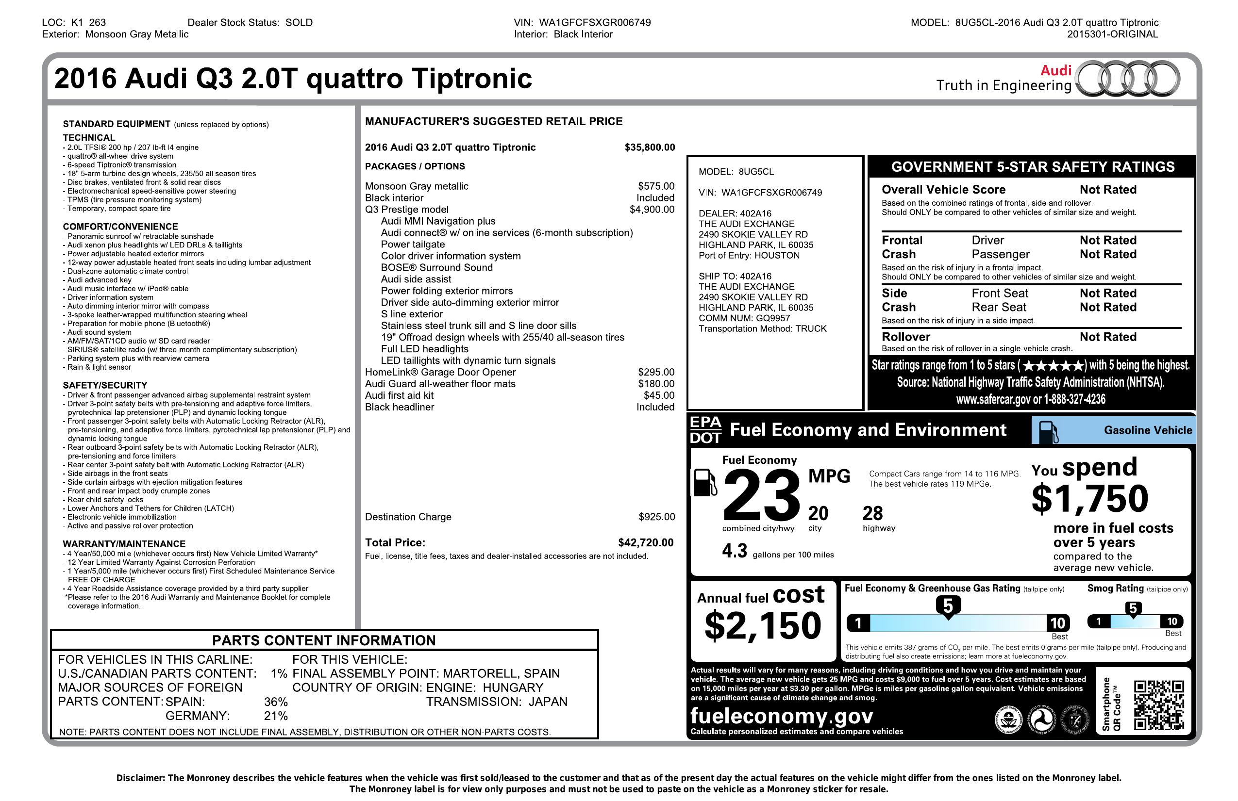 2016 Audi Q3 Quattro 4dr Prestige