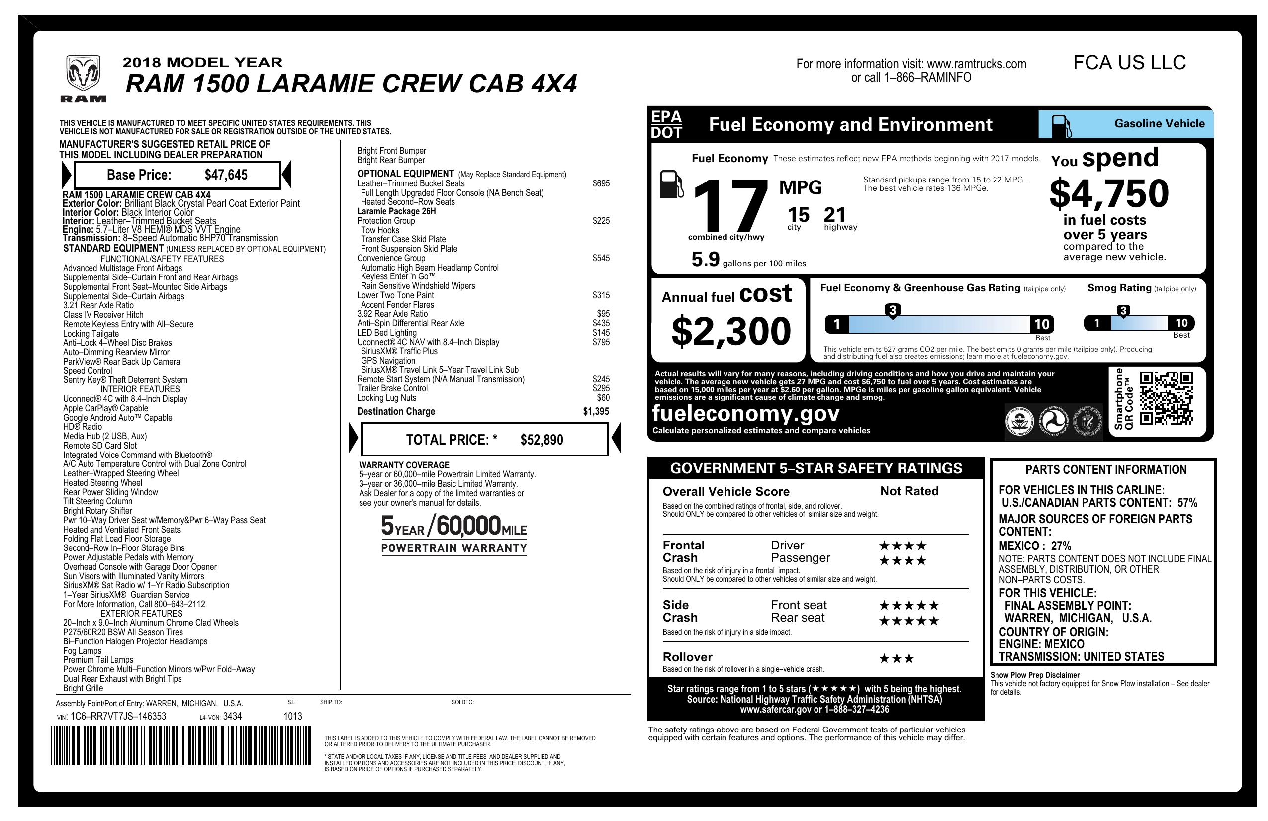2018 Ram 1500 Laramie 4x4 Crew Cab 6'4" Box