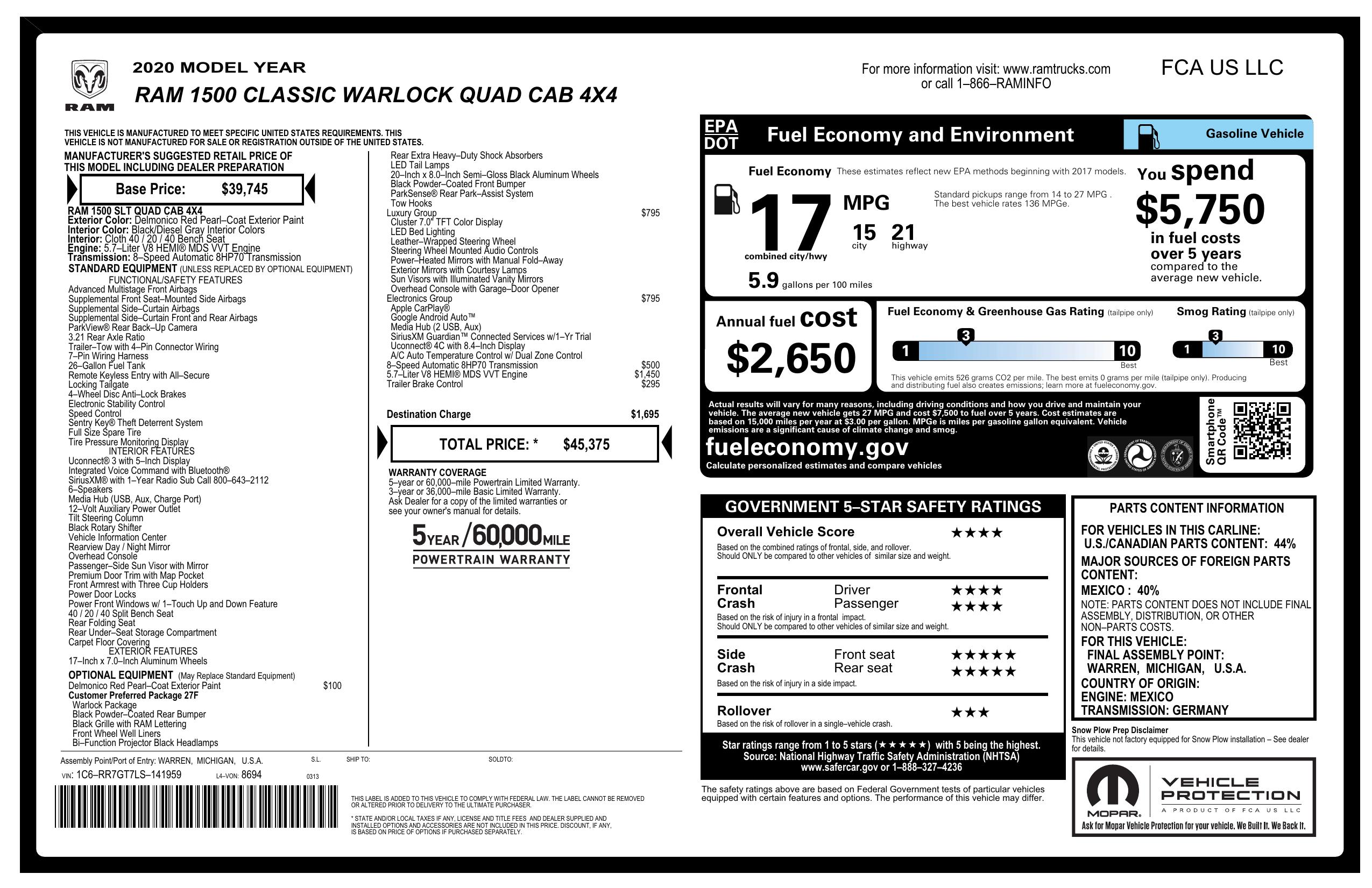 2020 Ram 1500 Classic Warlock 4x4 Quad Cab 6'4" Box