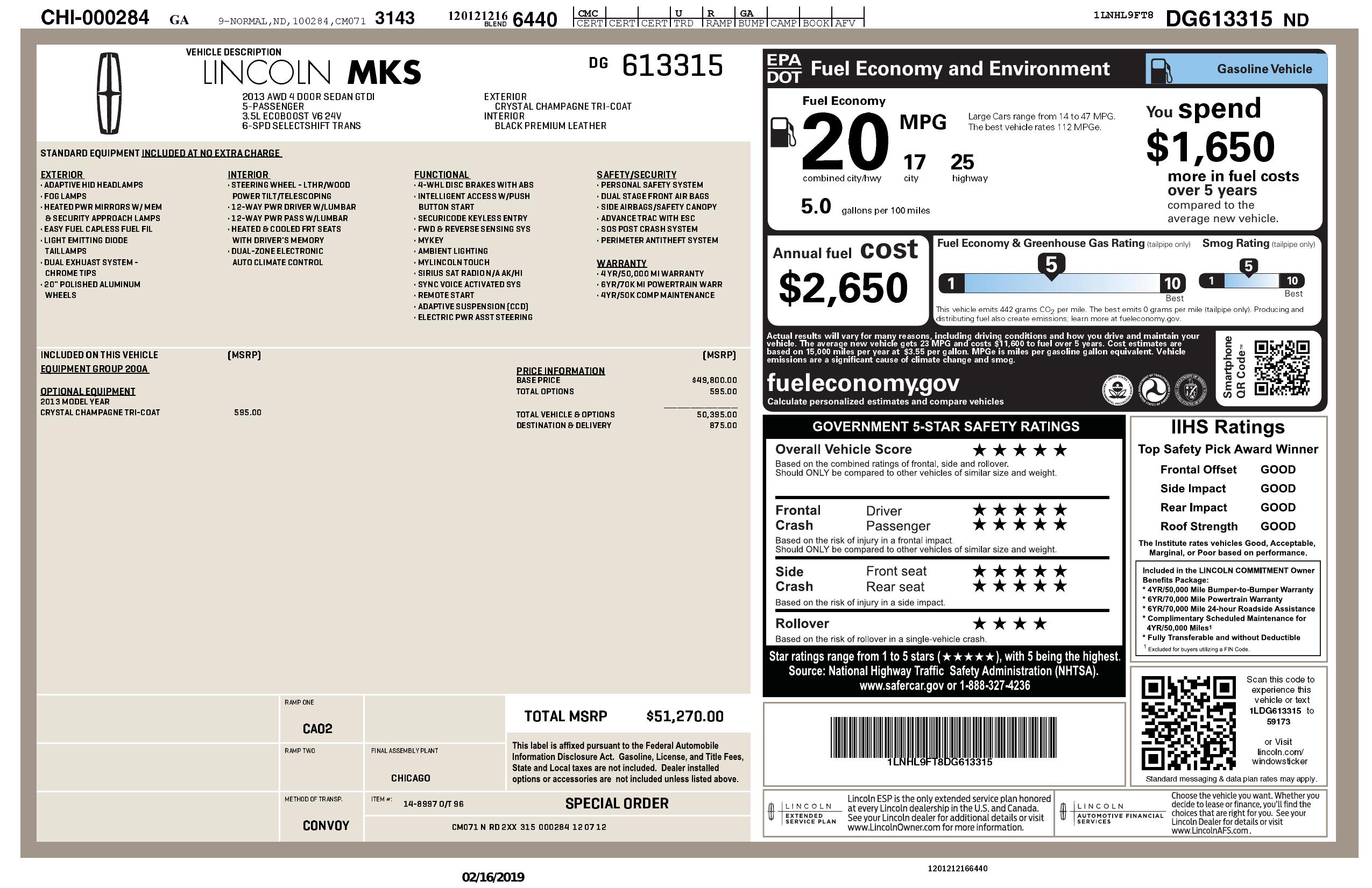 2013 Lincoln Mks 4dr Sdn 3.5 L Awd Eco Boost