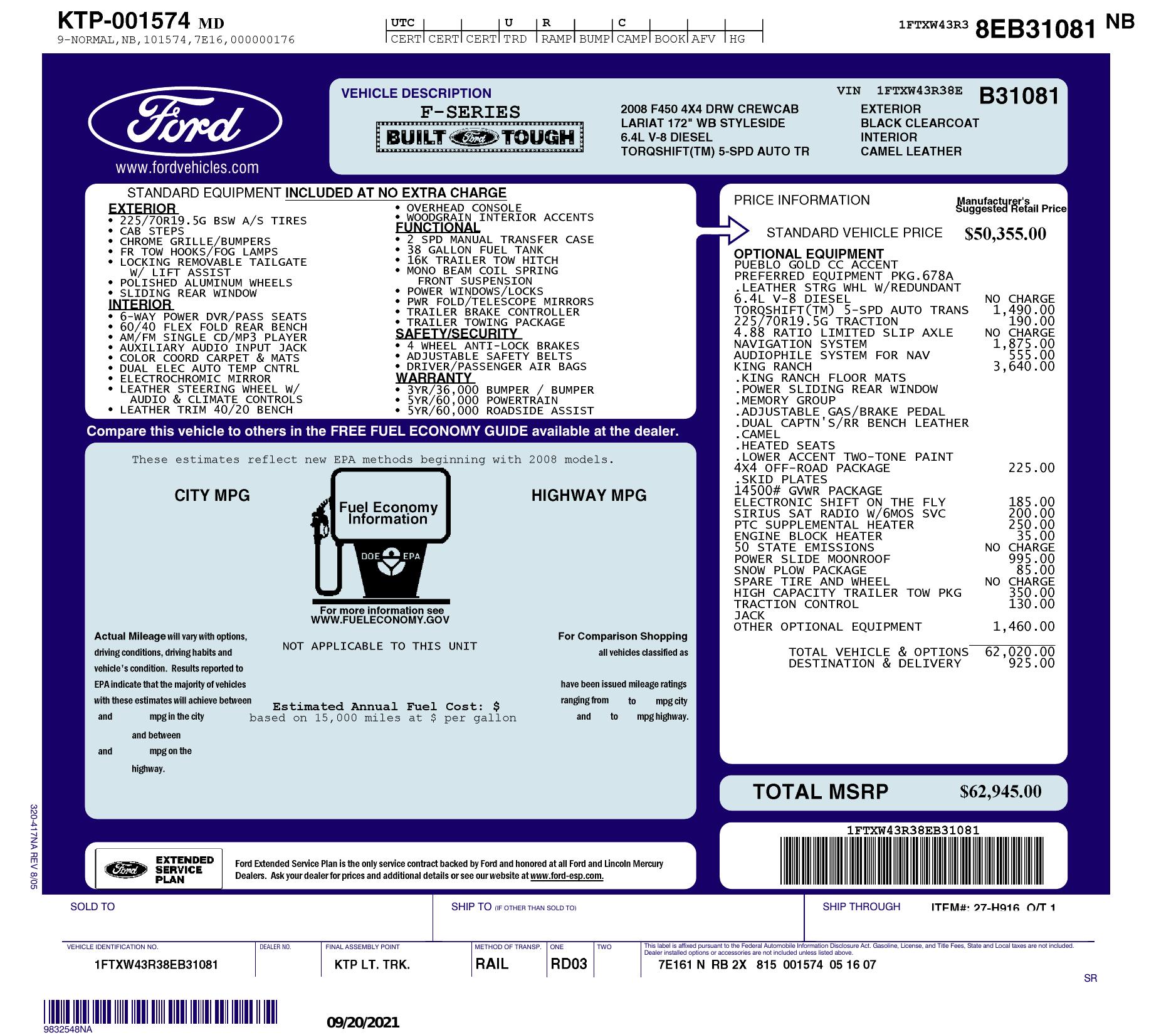 2008 Ford Super Duty F 450 Drw 4 Wd Crew Cab 172"