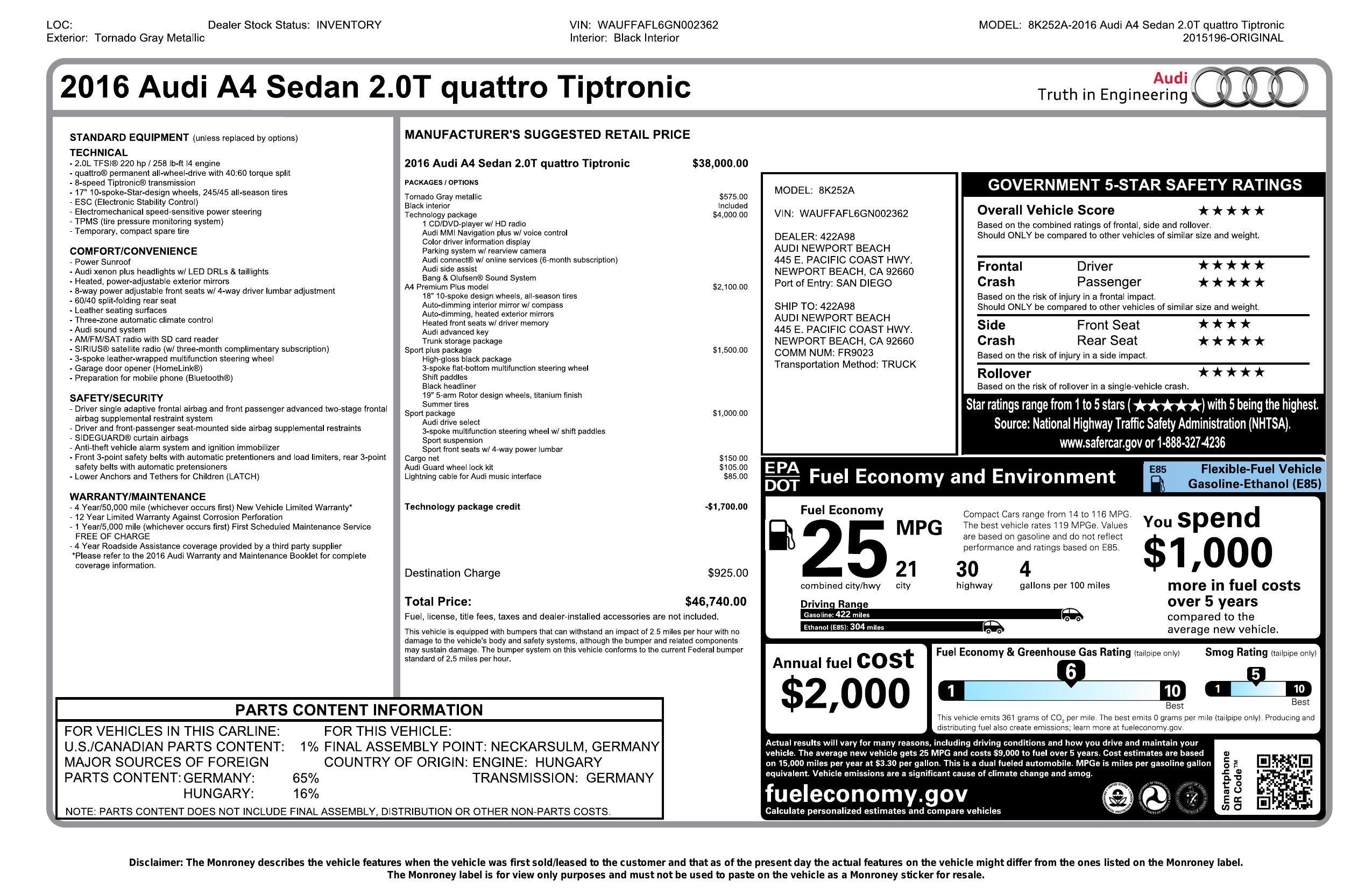 2016 Audi A4 2.0 T Premium Plus Quattro Sdn