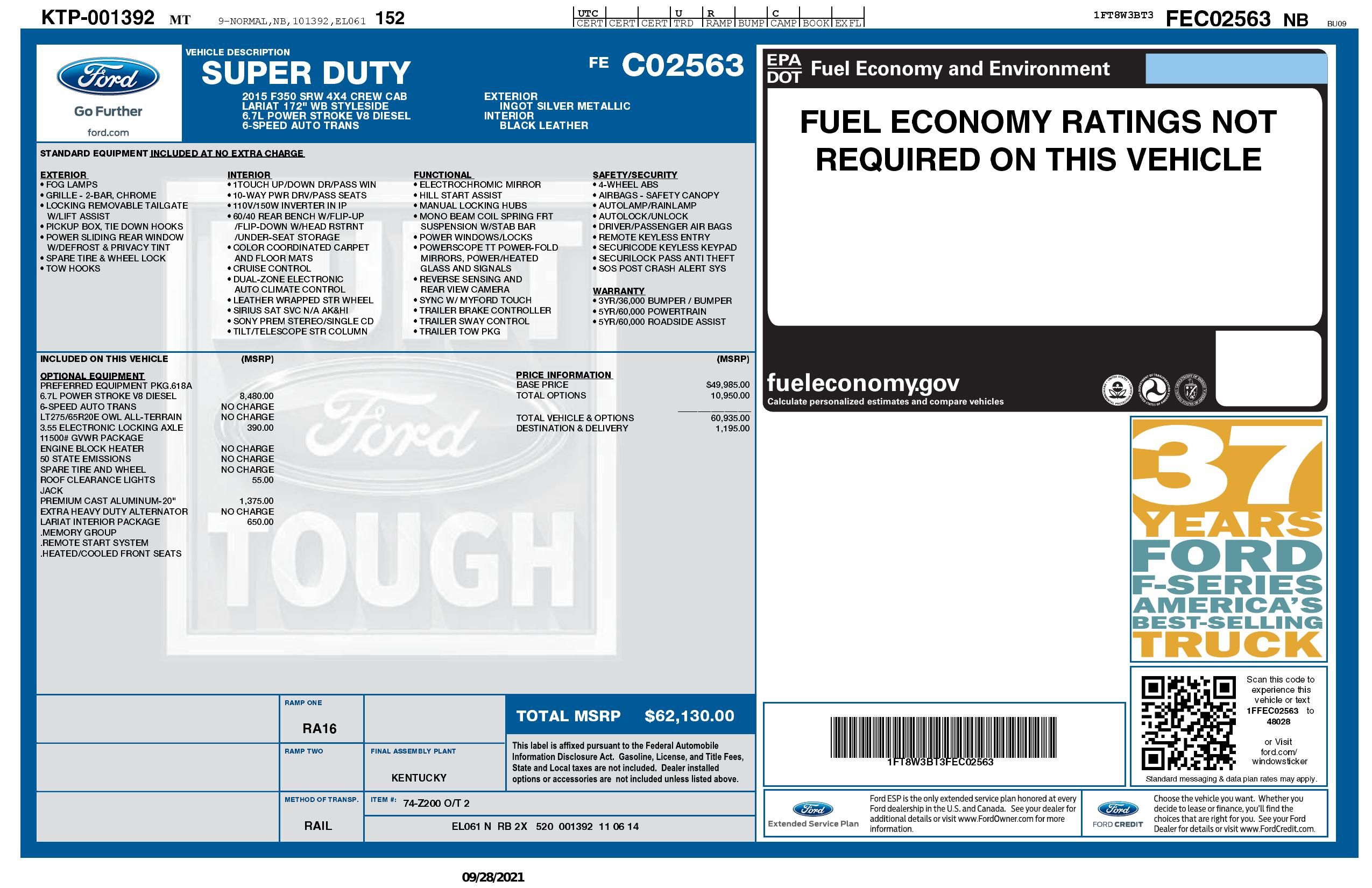 2015 Ford Super Duty F 350 Srw 4 Wd Crew Cab