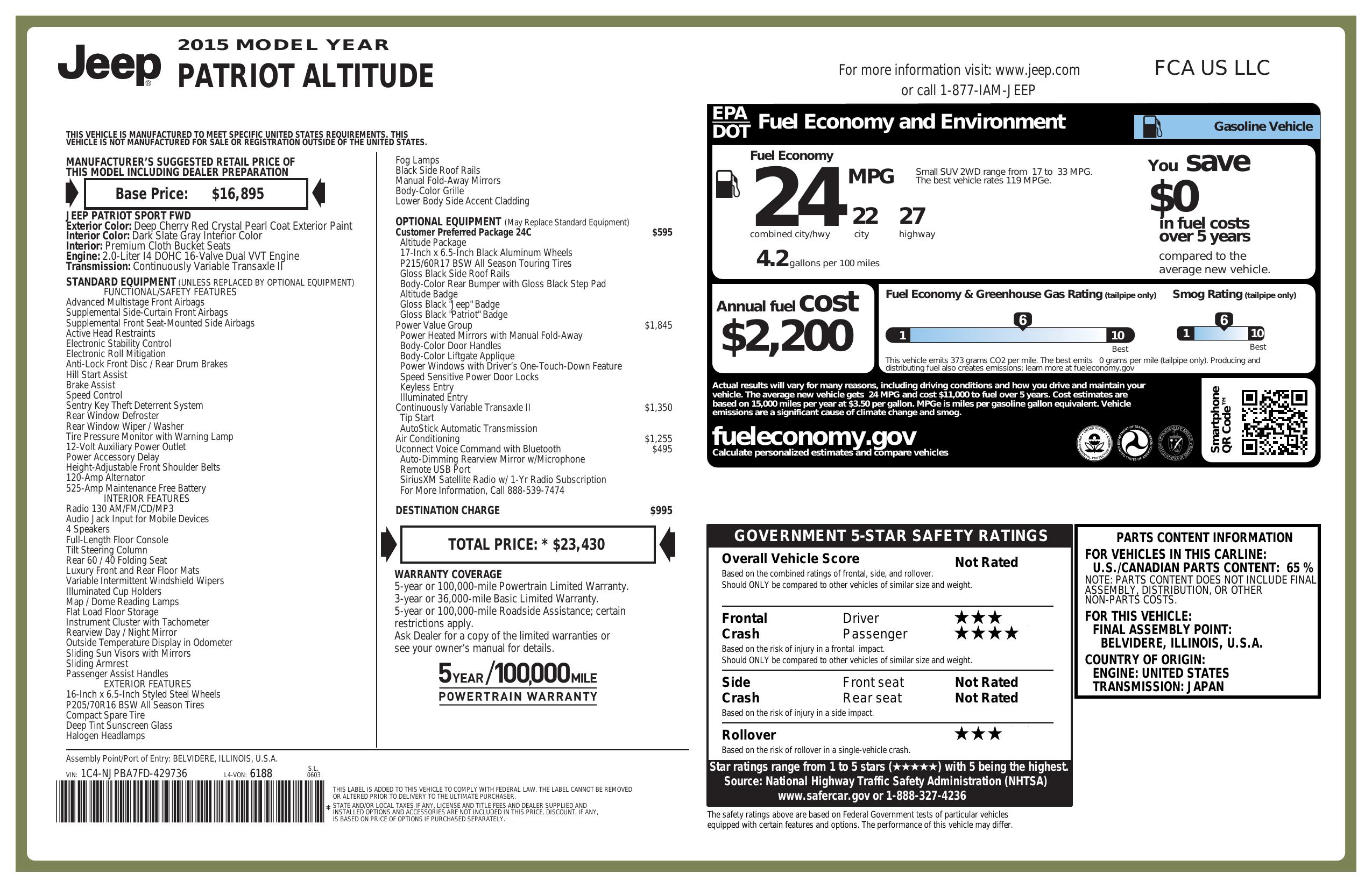 2015 Jeep Patriot Fwd 4dr Altitude Edition