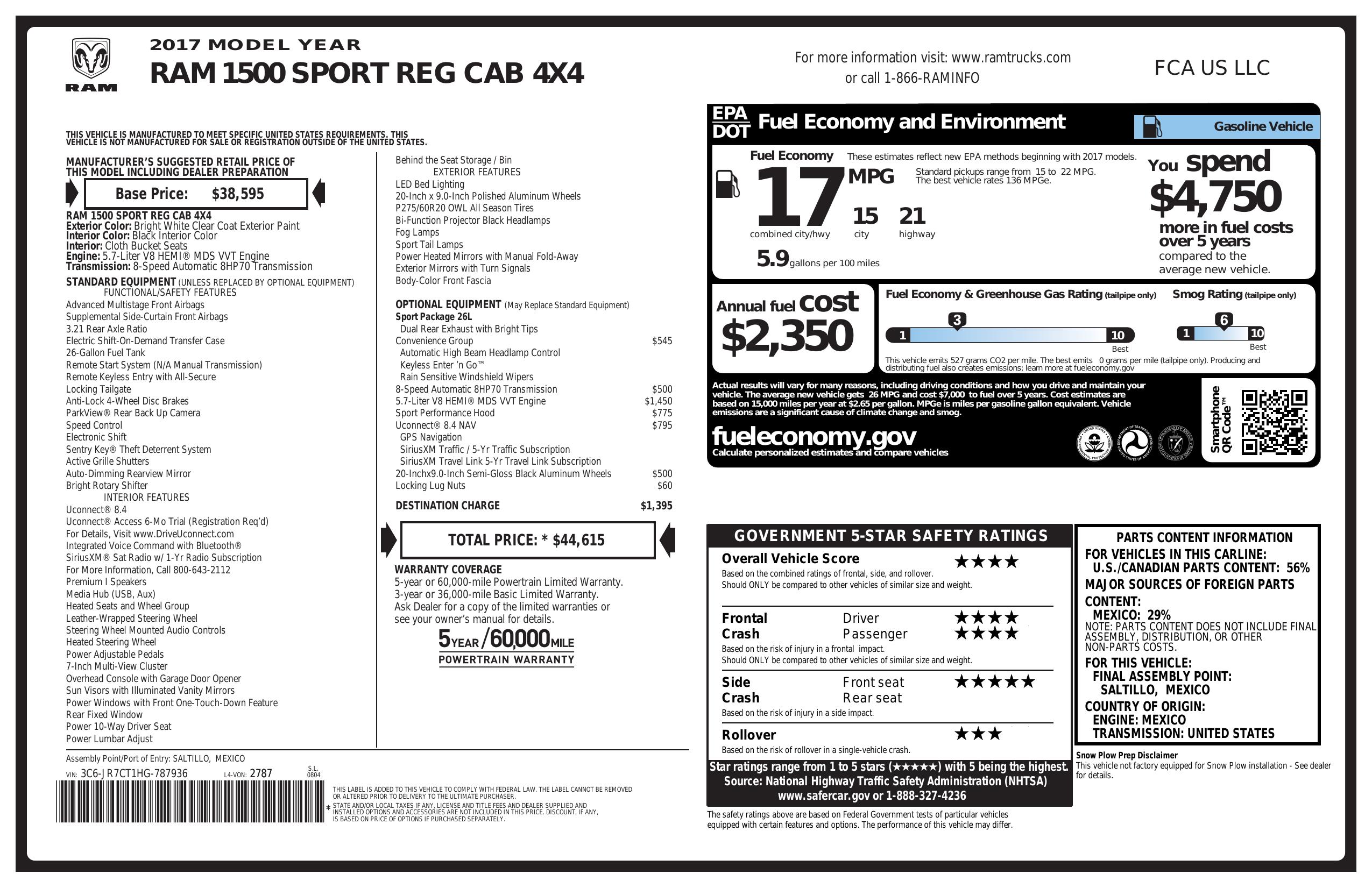 2017 Ram 1500 Sport 4x4 Regular Cab 6'4" Box