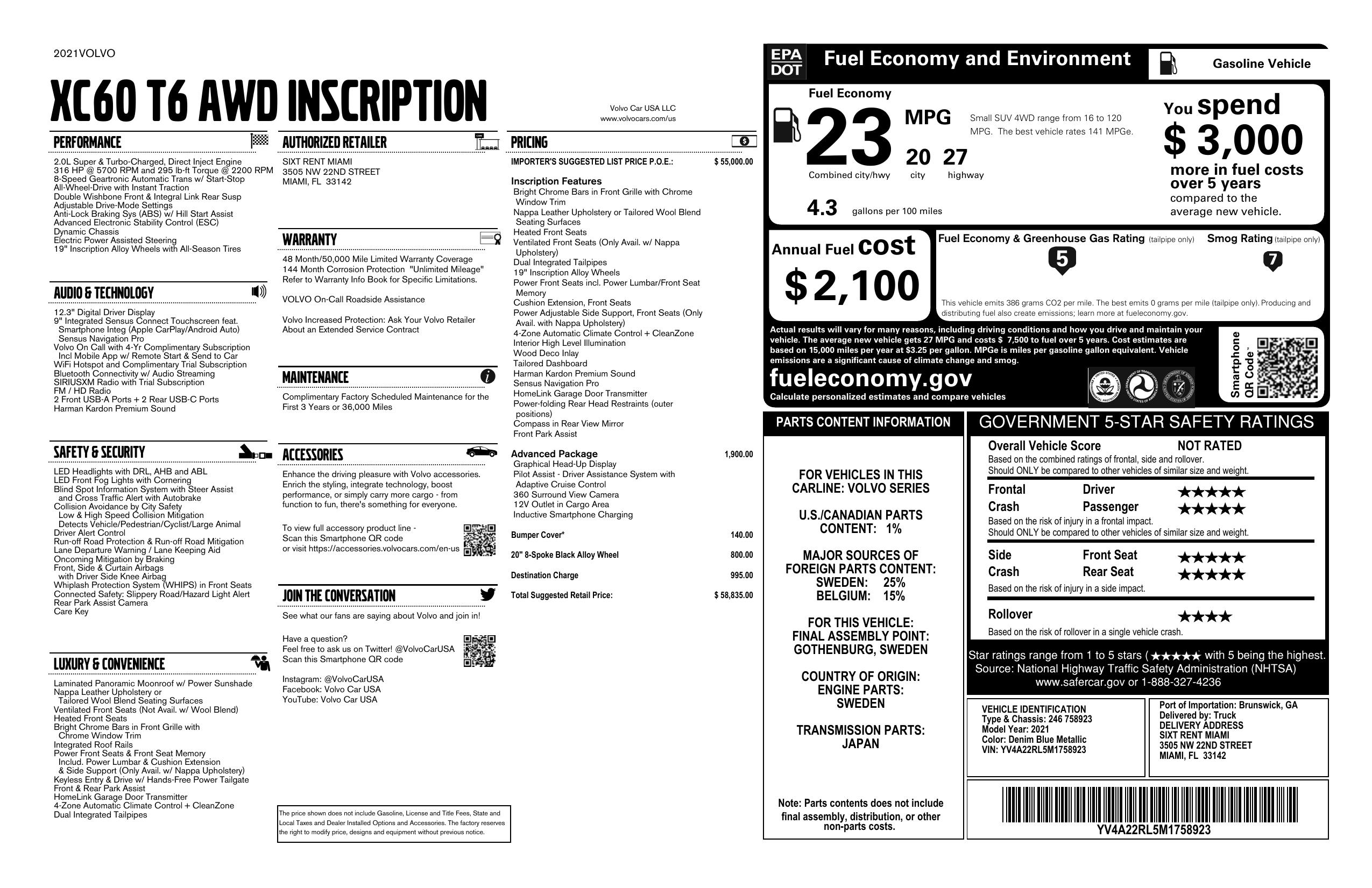2021 Volvo Xc60 T6 Awd Inscription