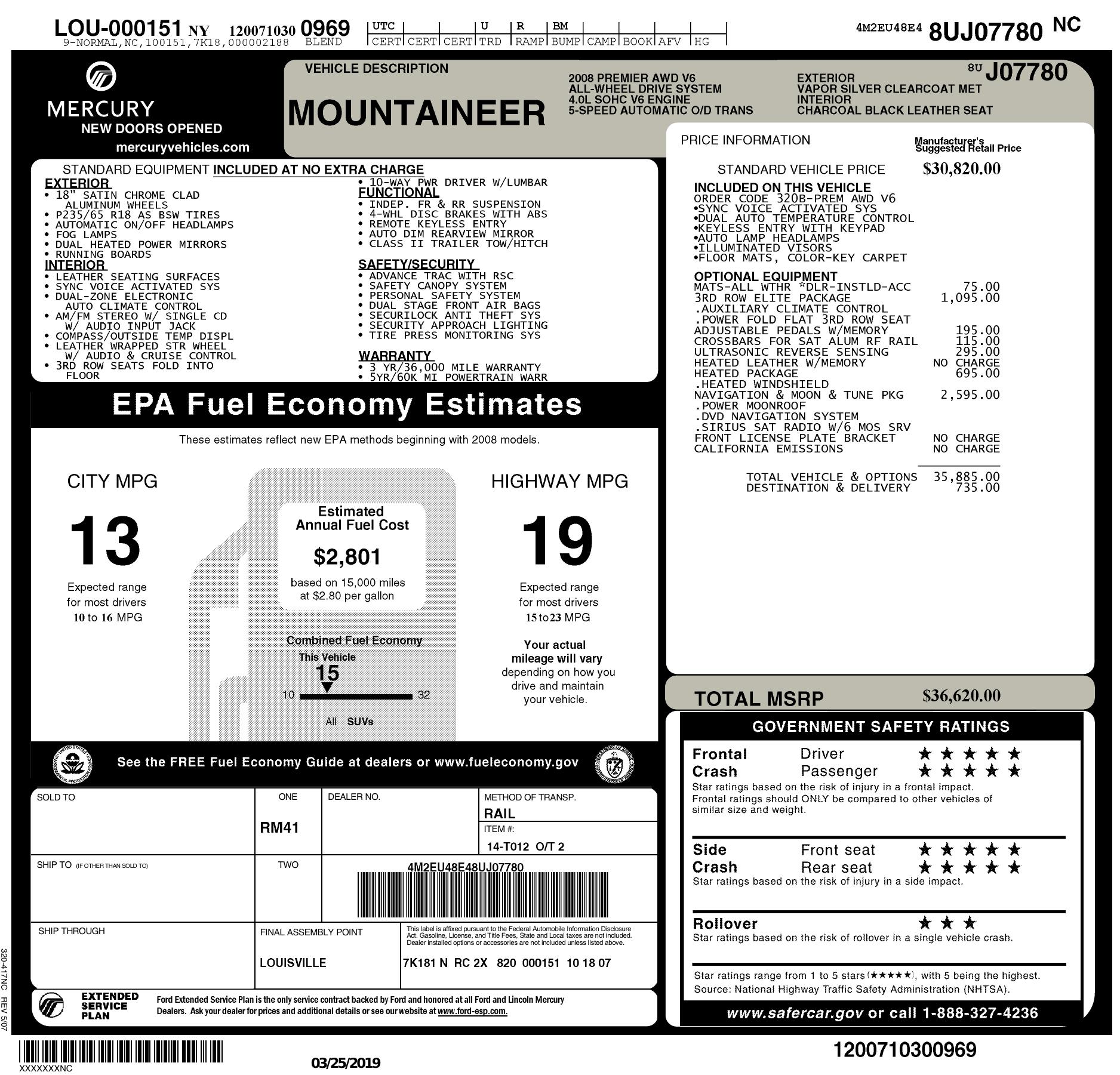 2008 Mercury Mountaineer Awd 4dr V6 Premier