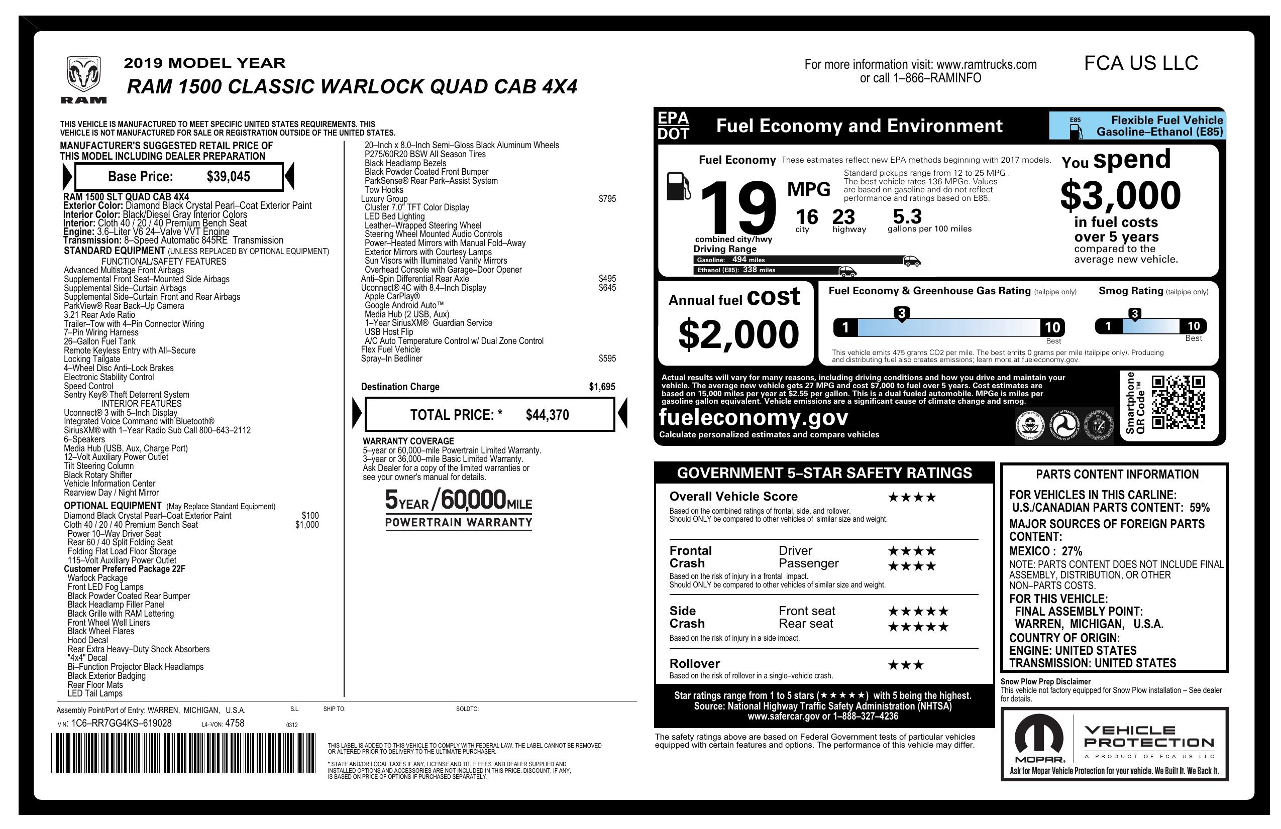 2019 Ram 1500 Classic Warlock 4x4 Quad Cab 6'4" Box