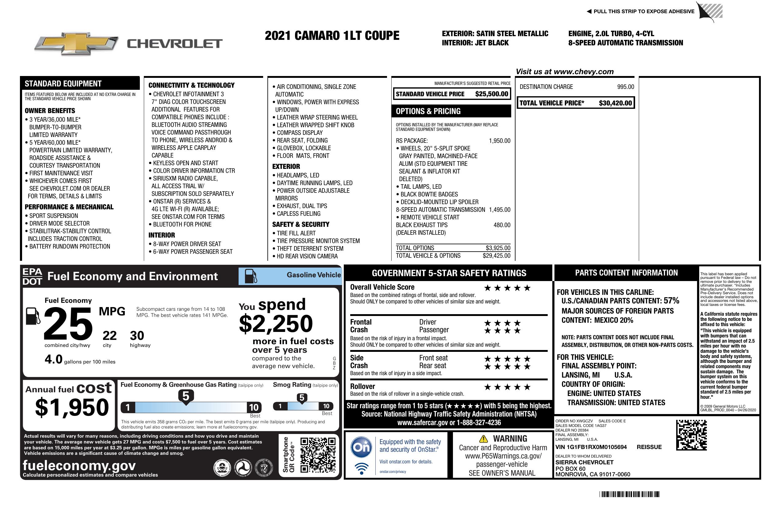2021 Chevrolet Camaro 2dr Cpe 1 Lt
