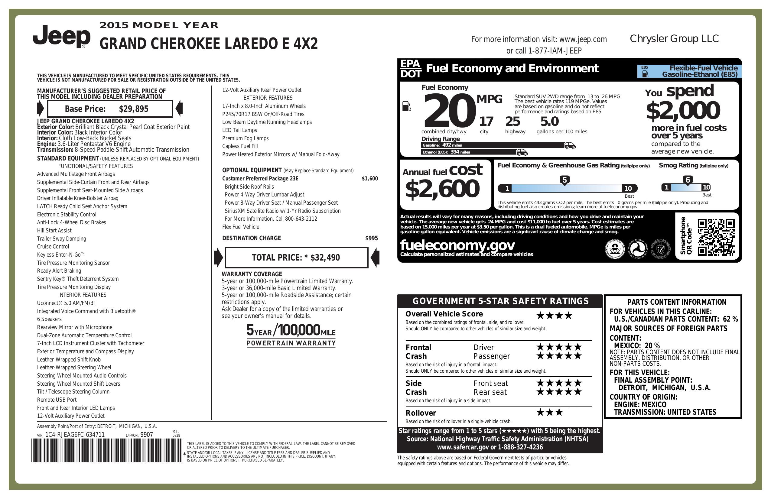 2015 Jeep Grand Cherokee Rwd 4dr Laredo