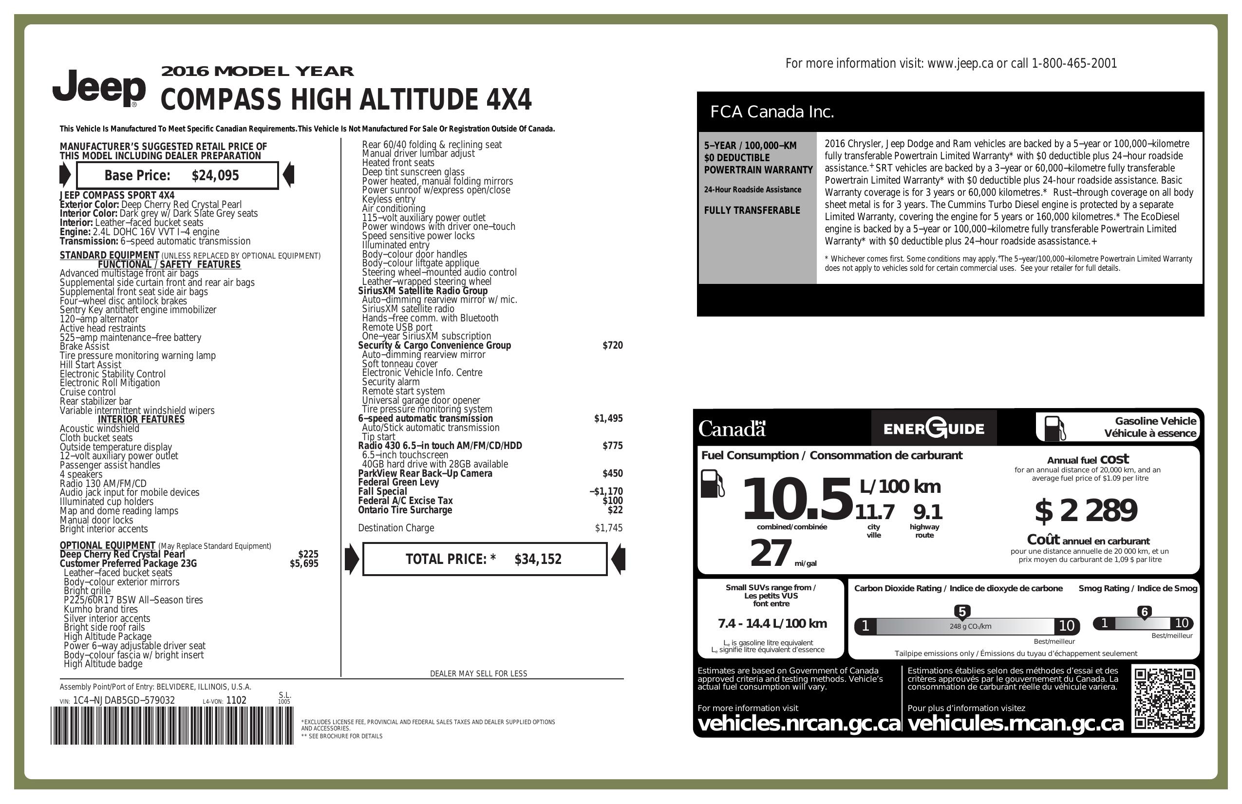 2016 Jeep Compass 4 Wd 4dr High Altitude