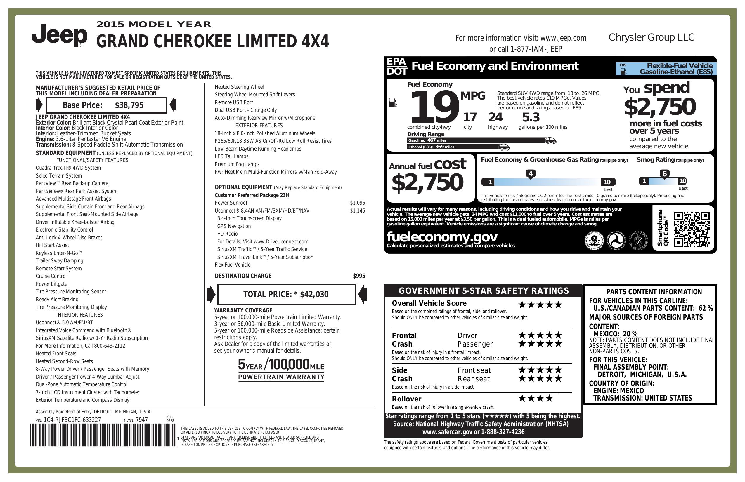 2015 Jeep Grand Cherokee 4 Wd 4dr Limited