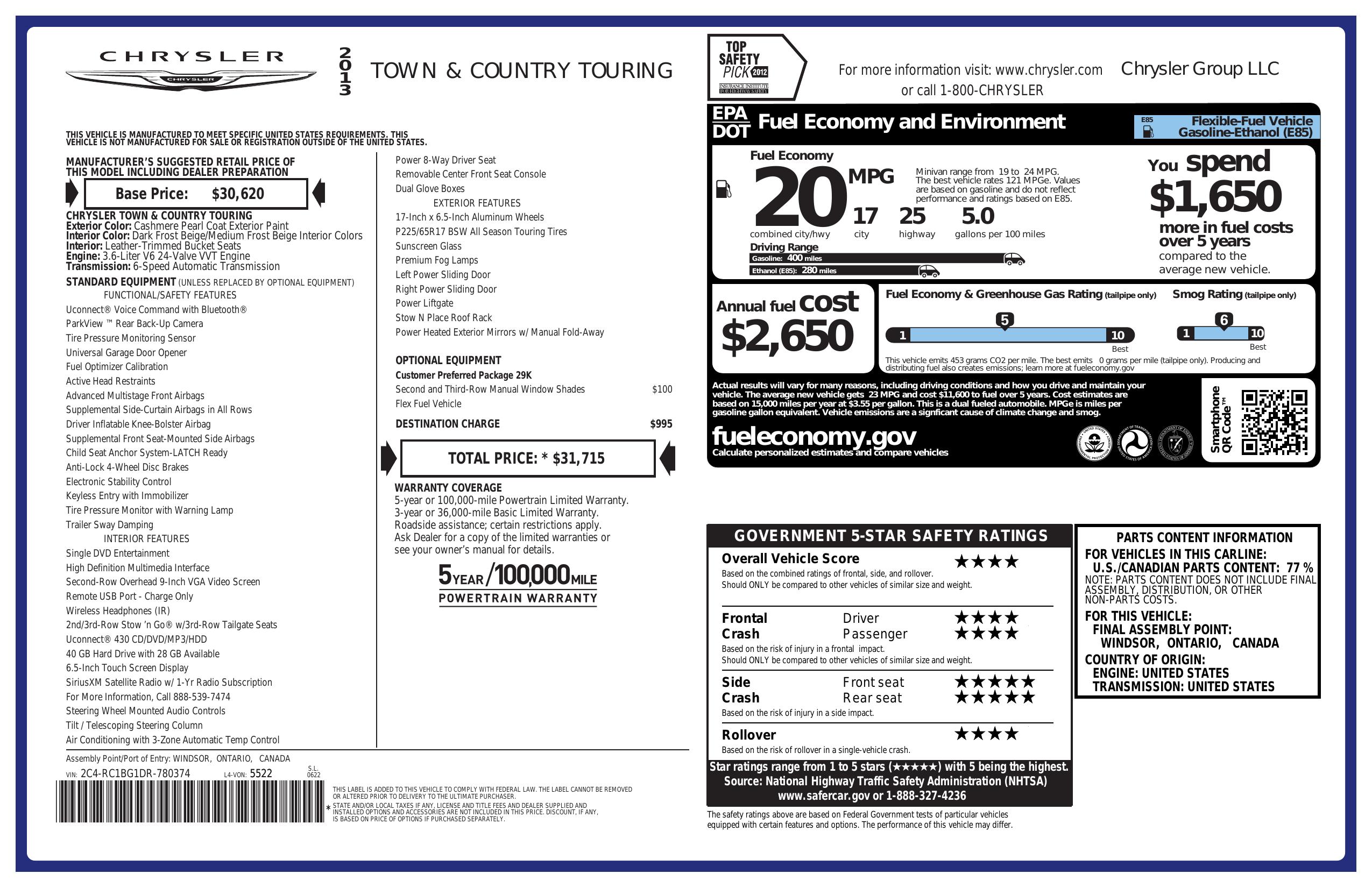 2013 Chrysler Town & Country 4dr Wgn Touring