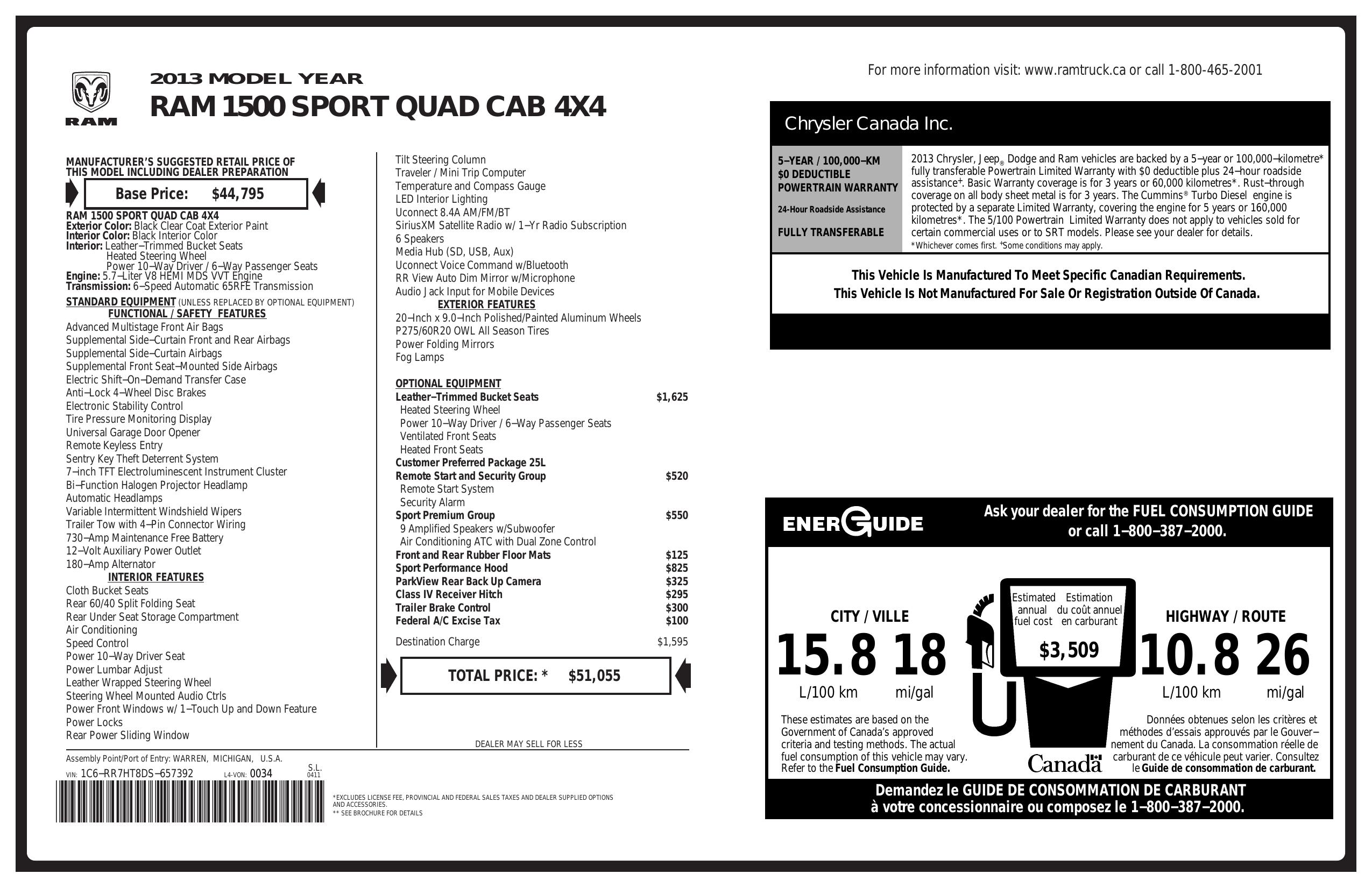 2013 Ram 1500 4 Wd Quad Cab 140.5" Sport