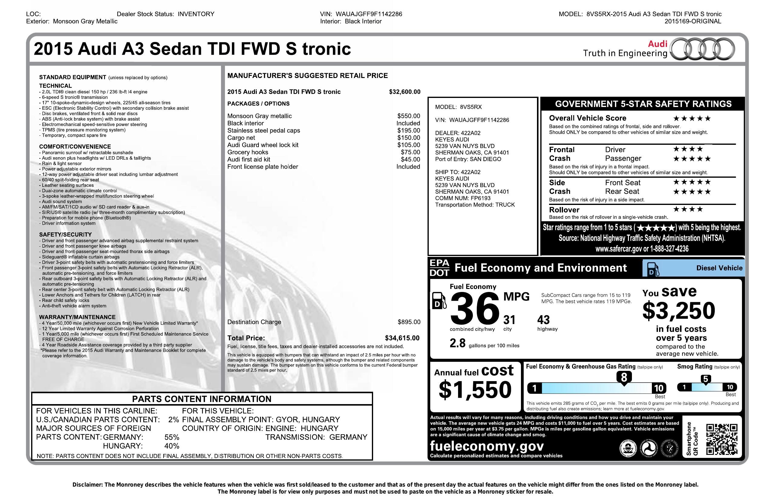 2015 Audi A3 4dr Sdn Fwd 2.0 Tdi Premium