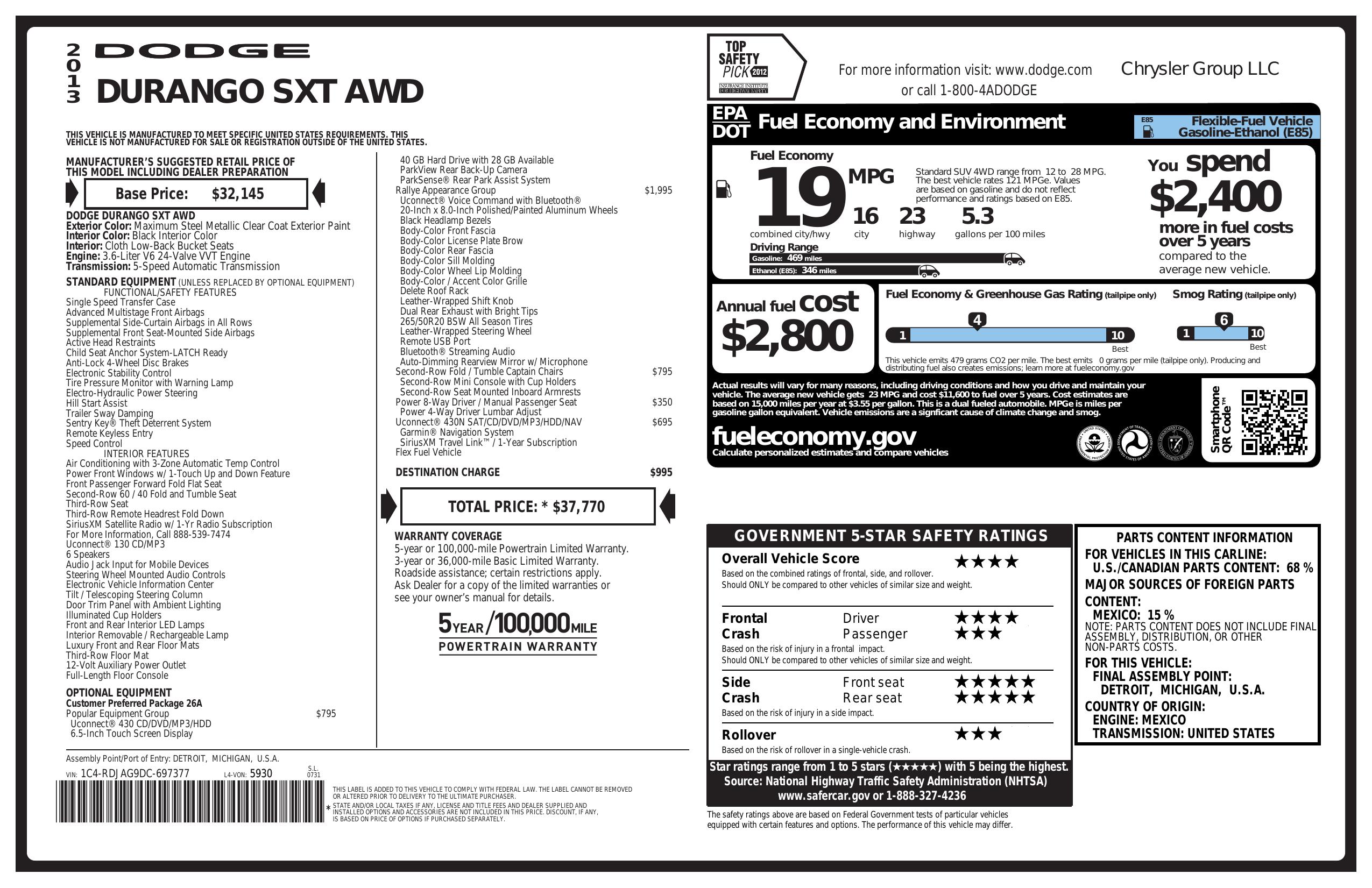 2013 Dodge Durango Awd 4dr Sxt