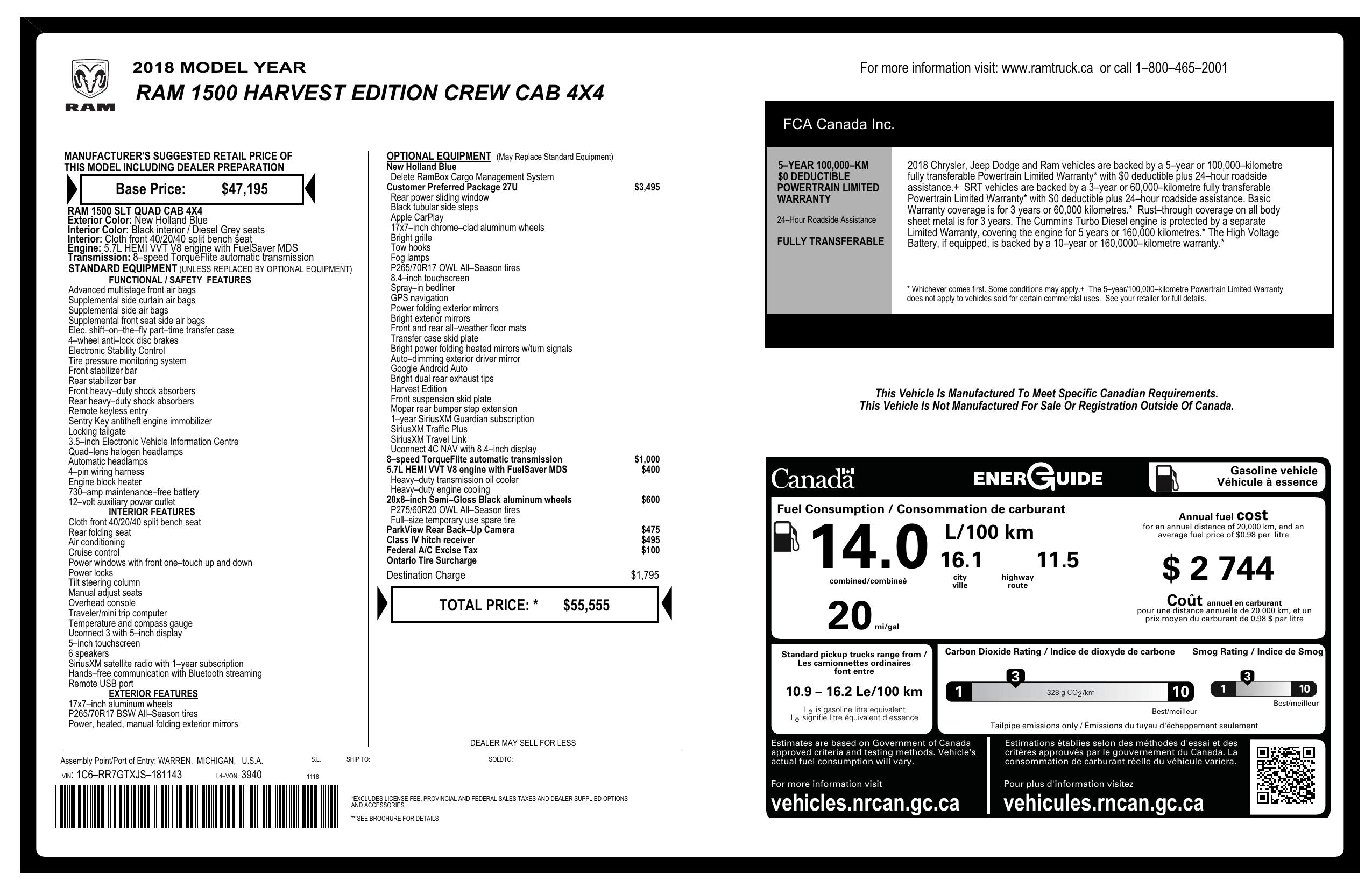 2018 Ram 1500 Harvest 4x4 Quad Cab 6'4" Box *Ltd Avail*