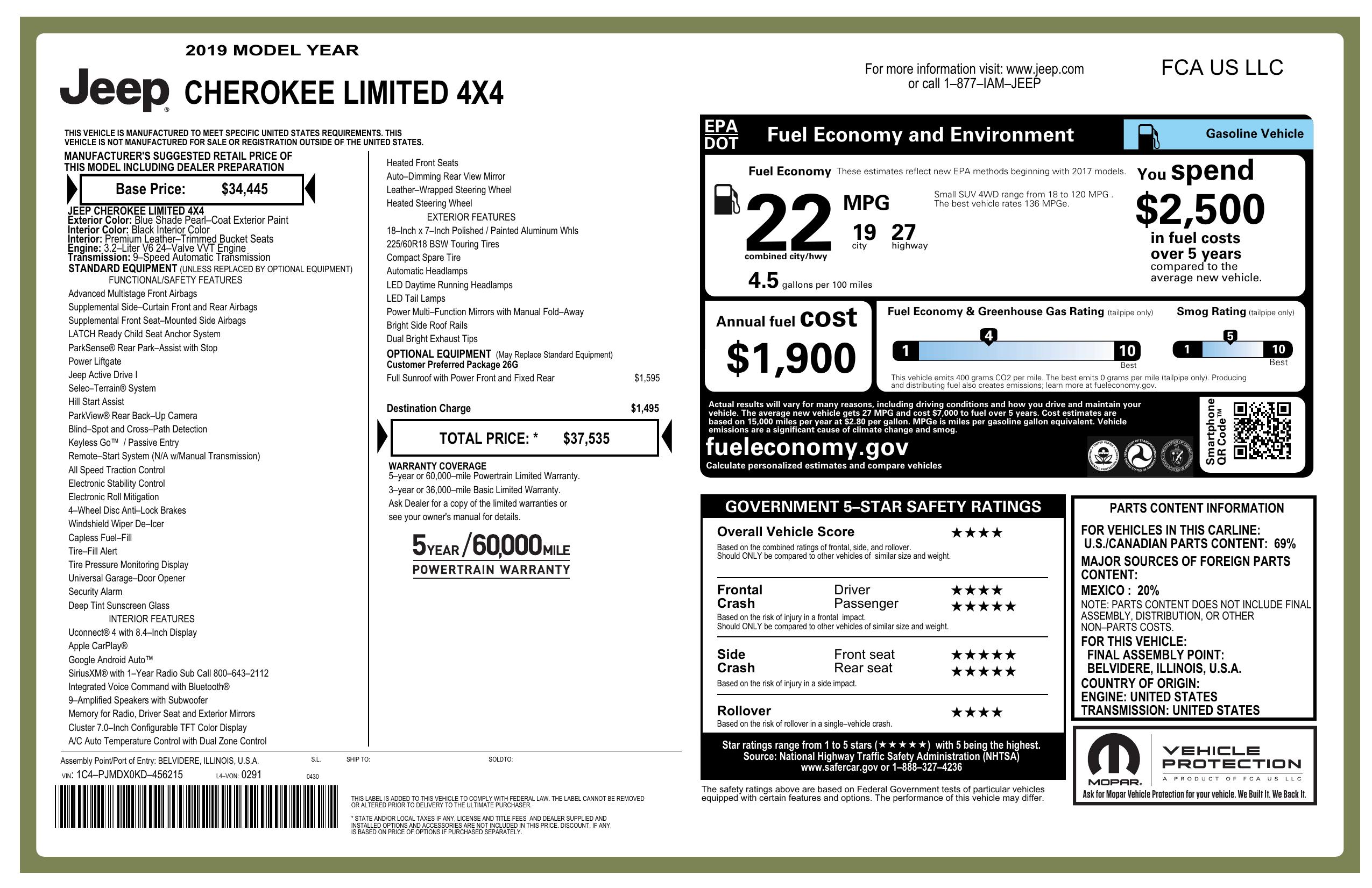 2019 Jeep Cherokee Limited 4x4