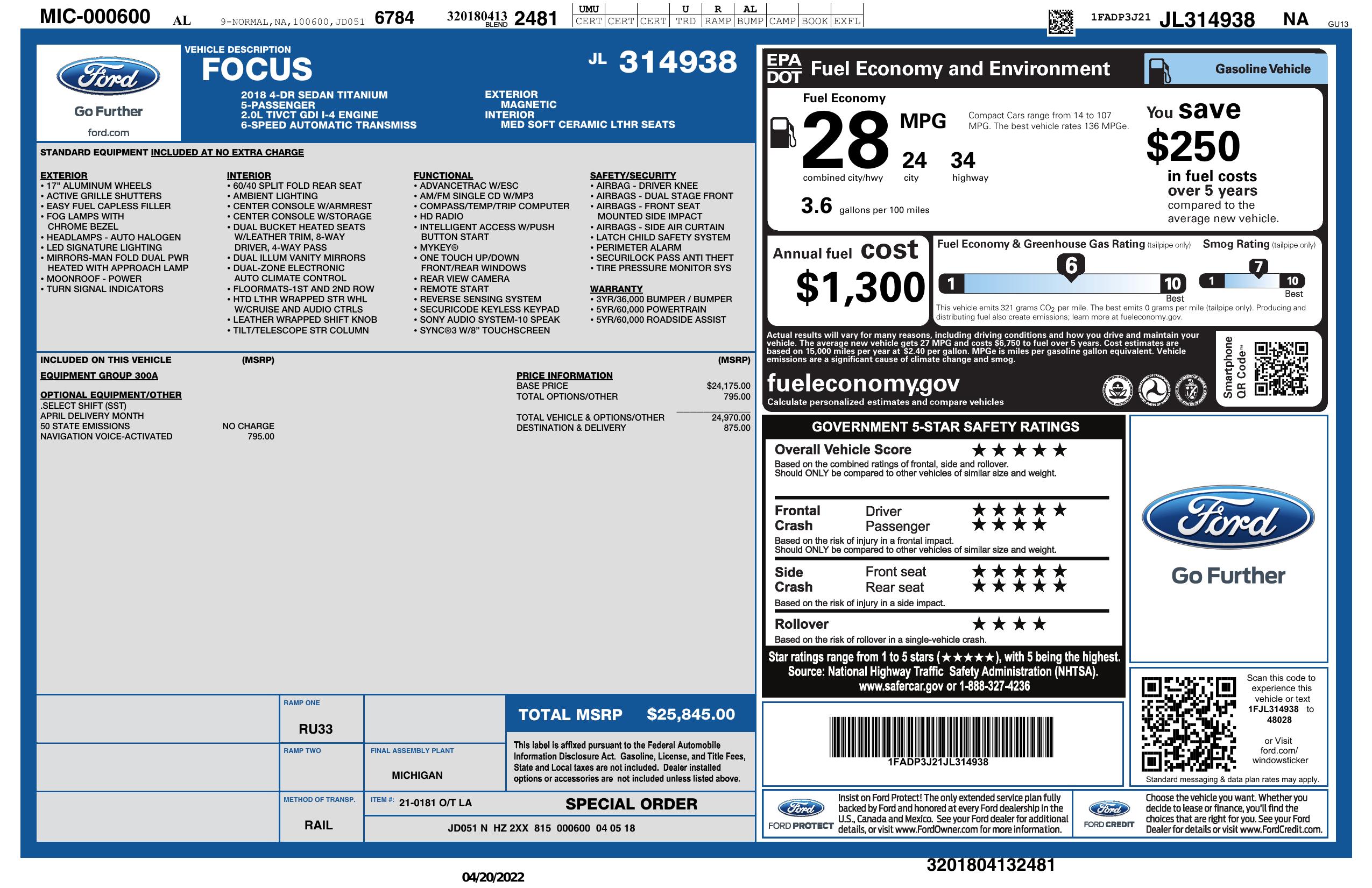 2018 Ford Focus Titanium Sedan