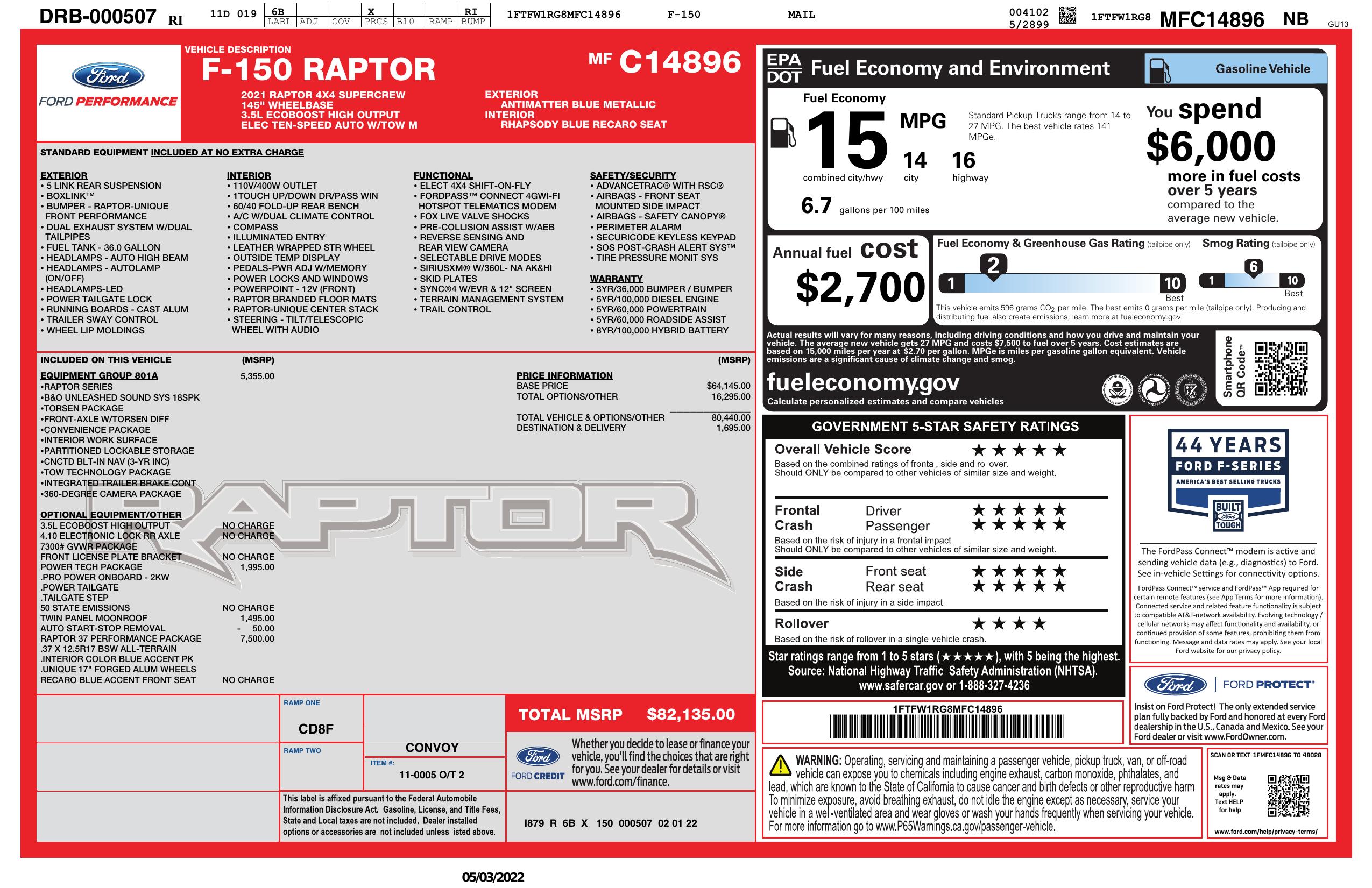 2021 Ford F 150 Raptor Super Crew 4 Wd