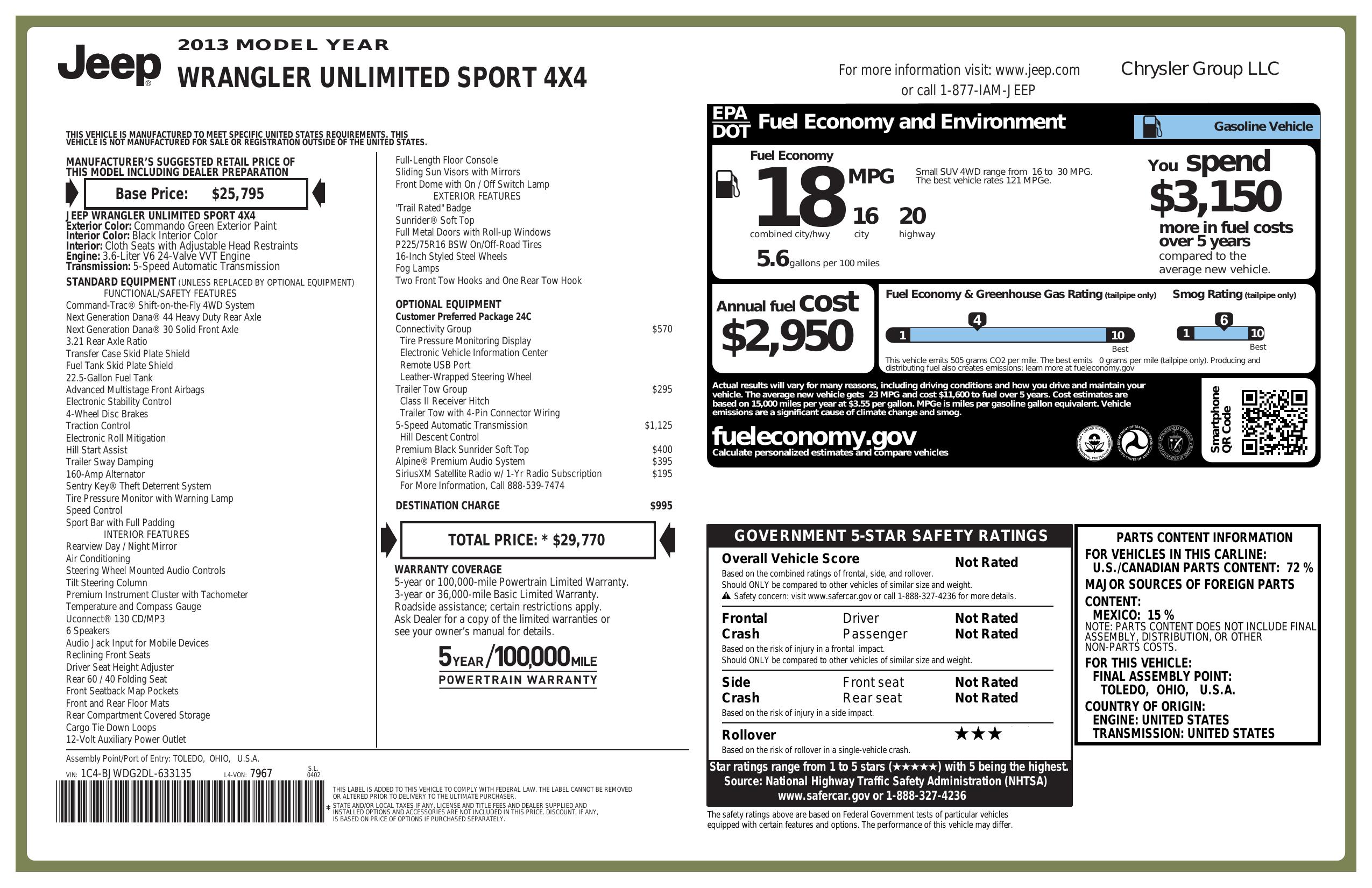 2013 Jeep Wrangler Unlimited 4 Wd 4dr Sport