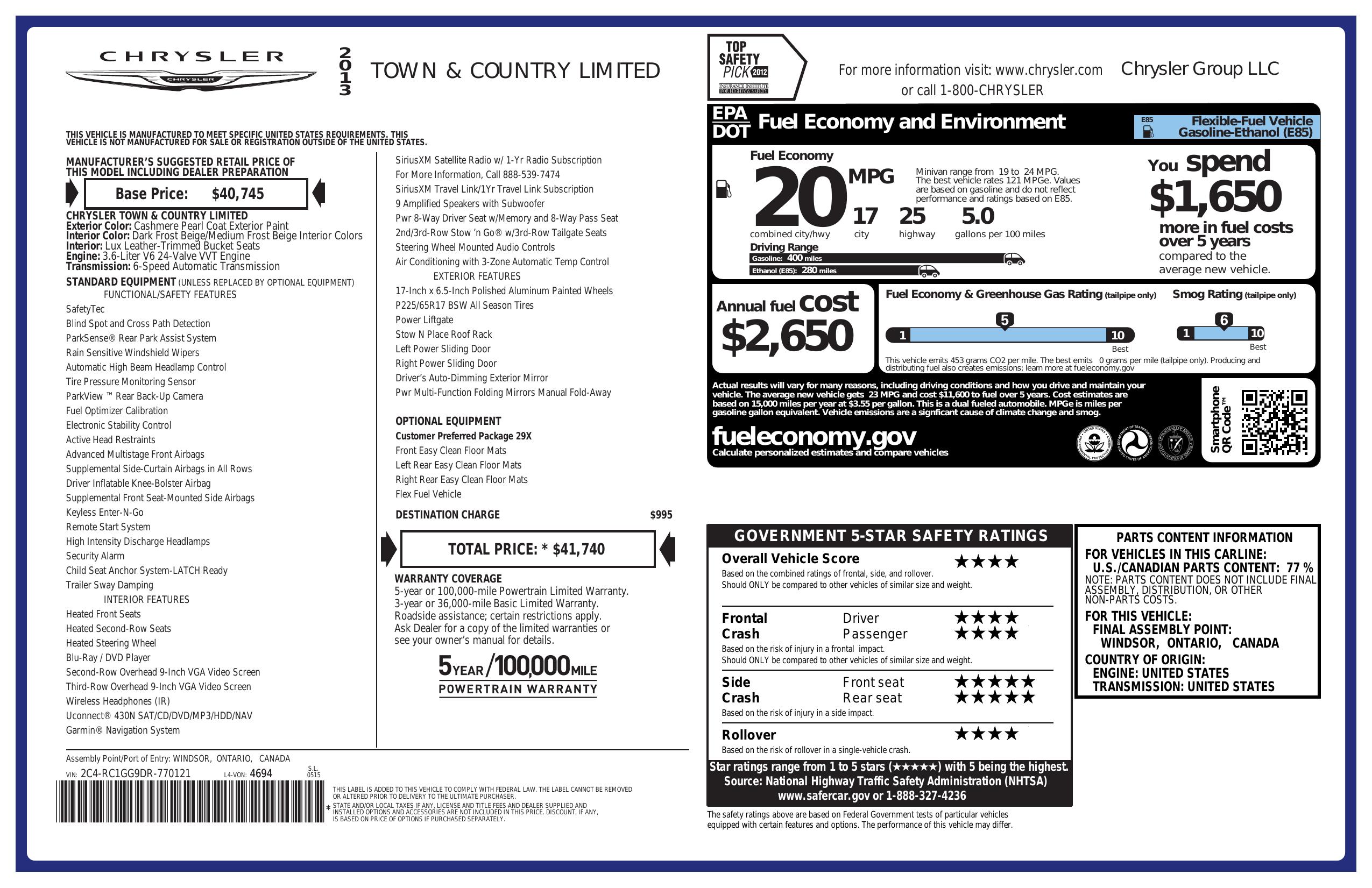 2013 Chrysler Town & Country 4dr Wgn Limited