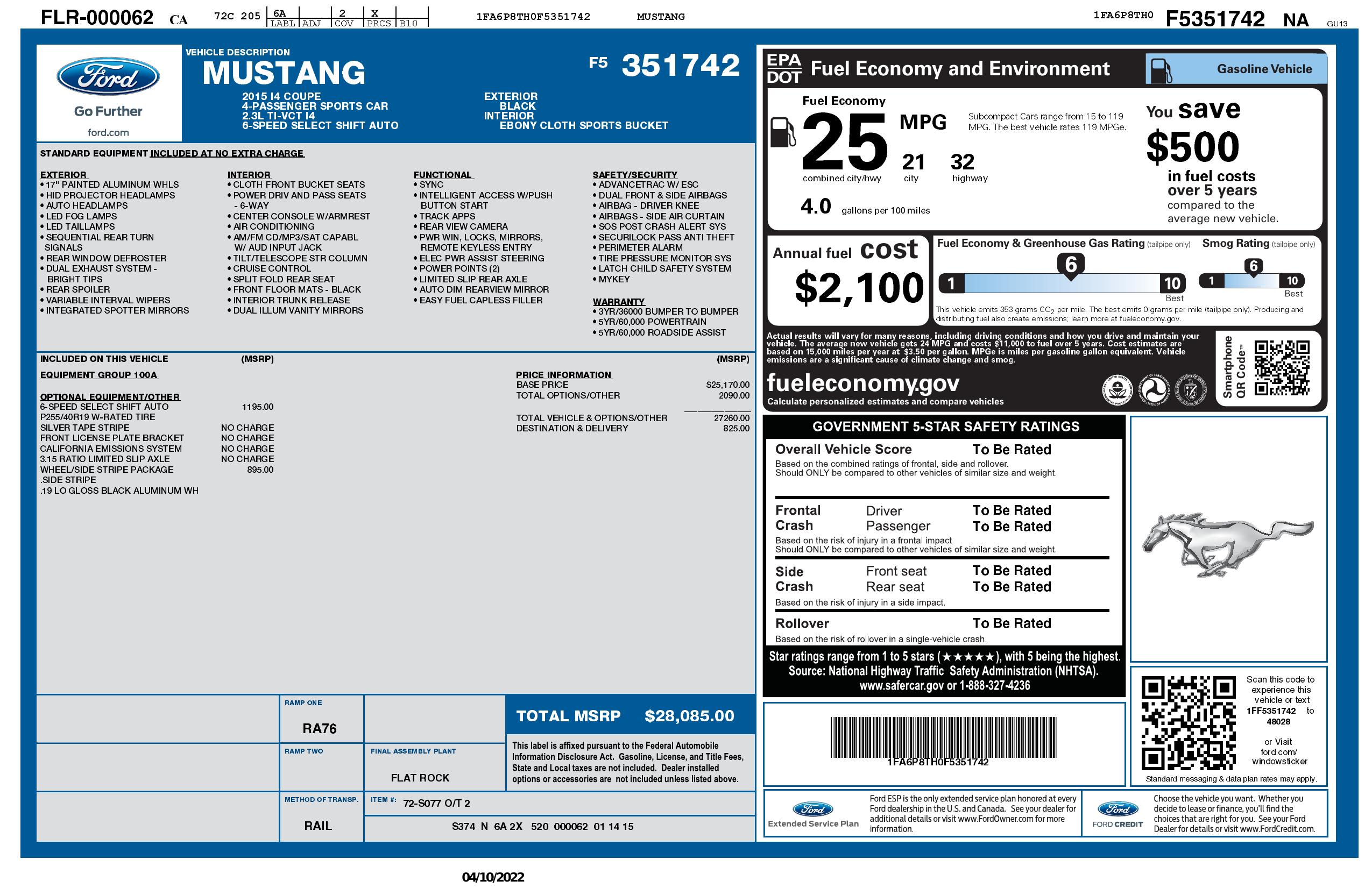 2015 Ford Mustang 2dr Fastback Eco Boost