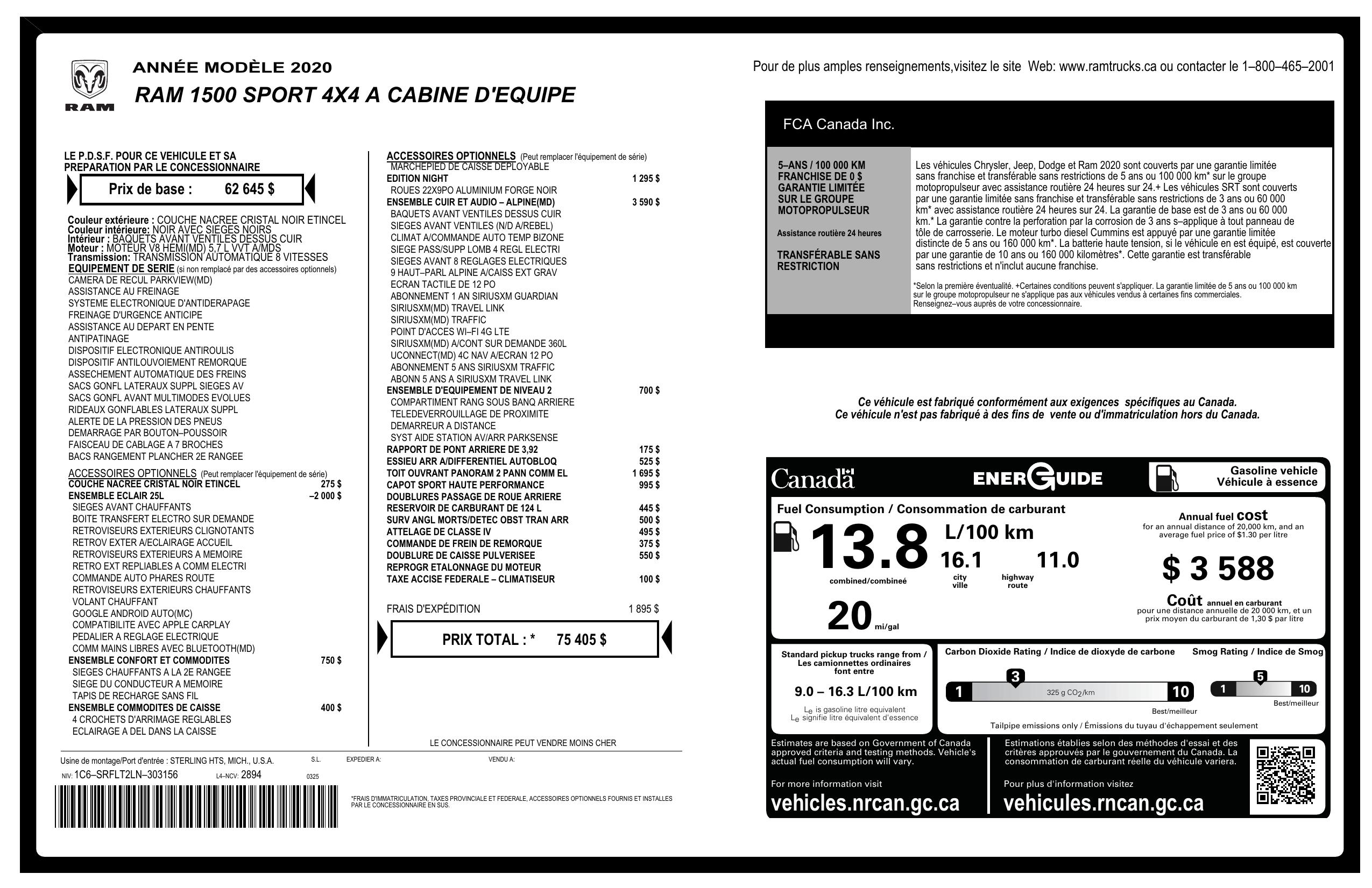 2020 Ram 1500 Sport 4x4 Crew Cab 5'7" Box