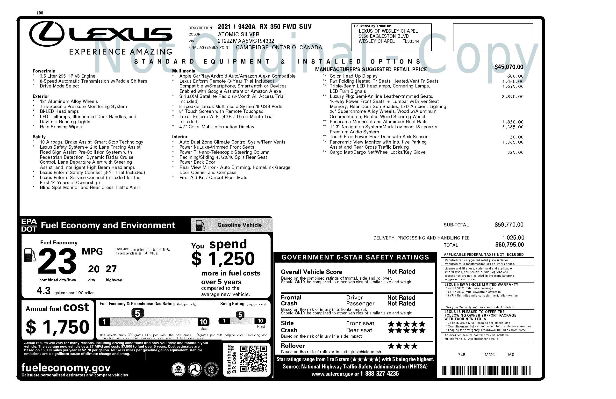 2021 Lexus Rx Rx 350 Fwd