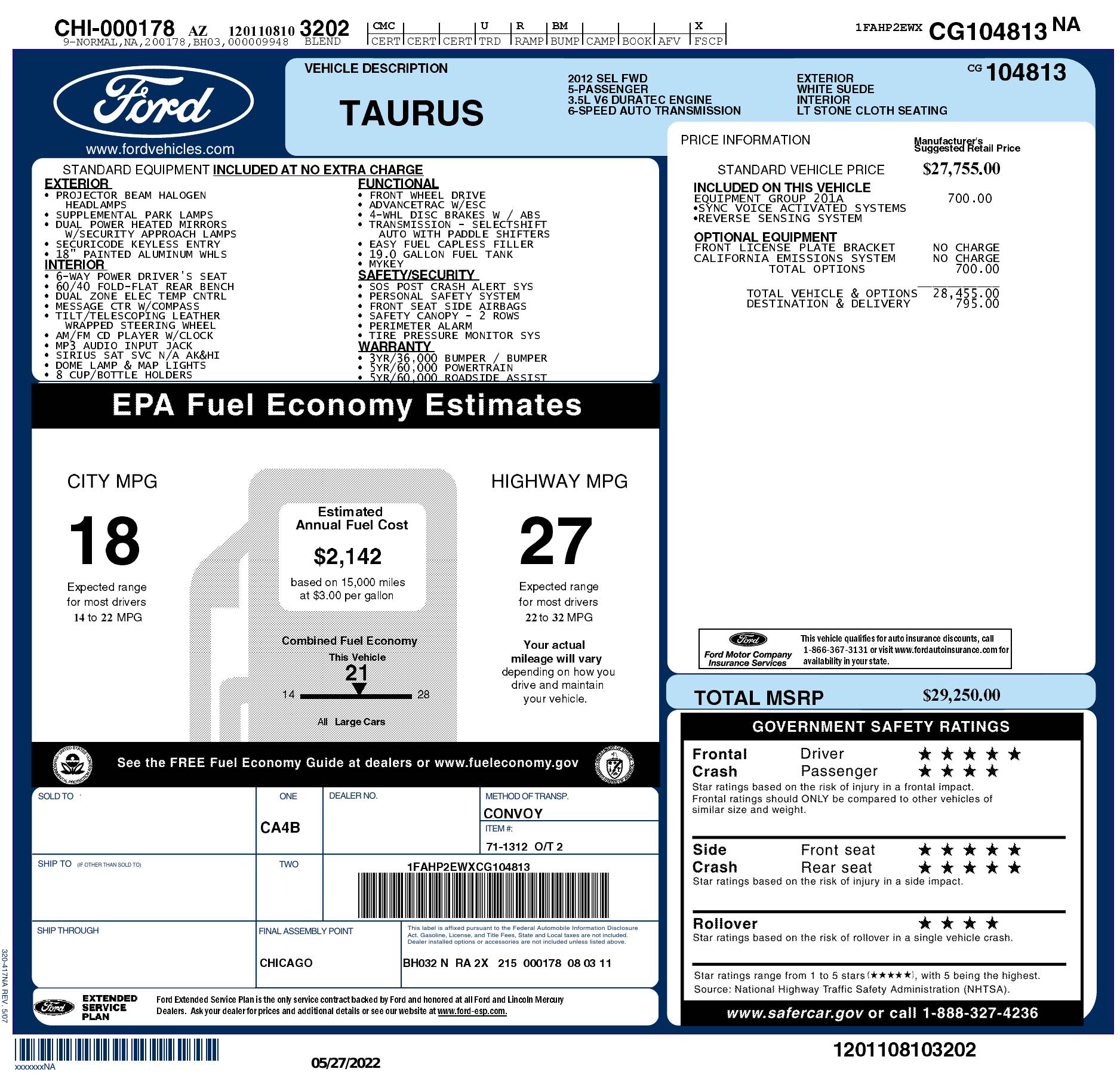 2012 Ford Taurus 4dr Sdn Sel Fwd