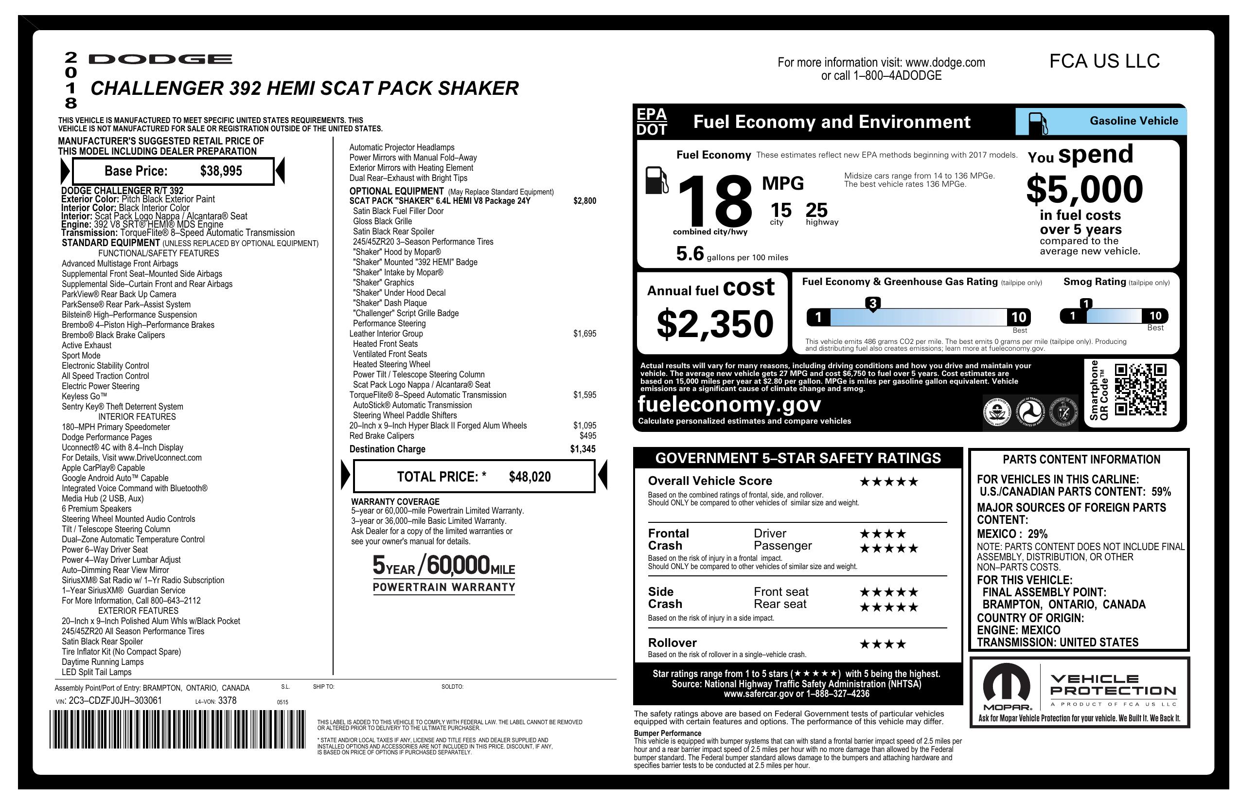 2018 Dodge Challenger 392 Hemi Scat Pack Shaker Rwd
