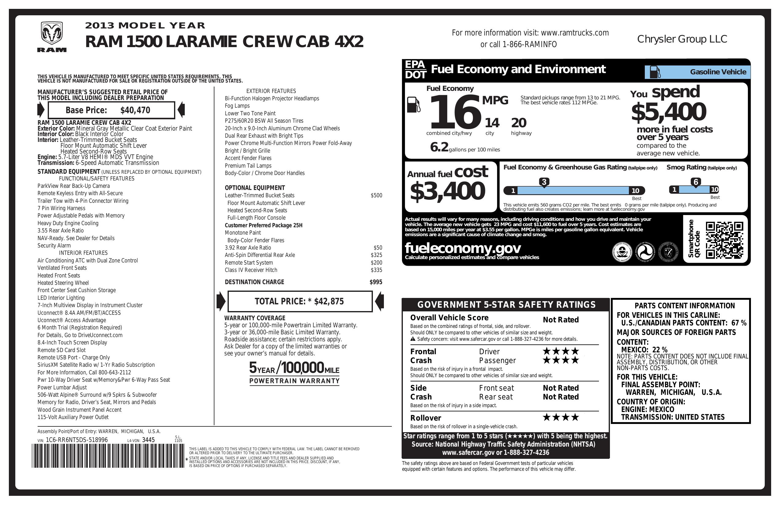 2013 Ram 1500 2 Wd Crew Cab 140.5" Laramie