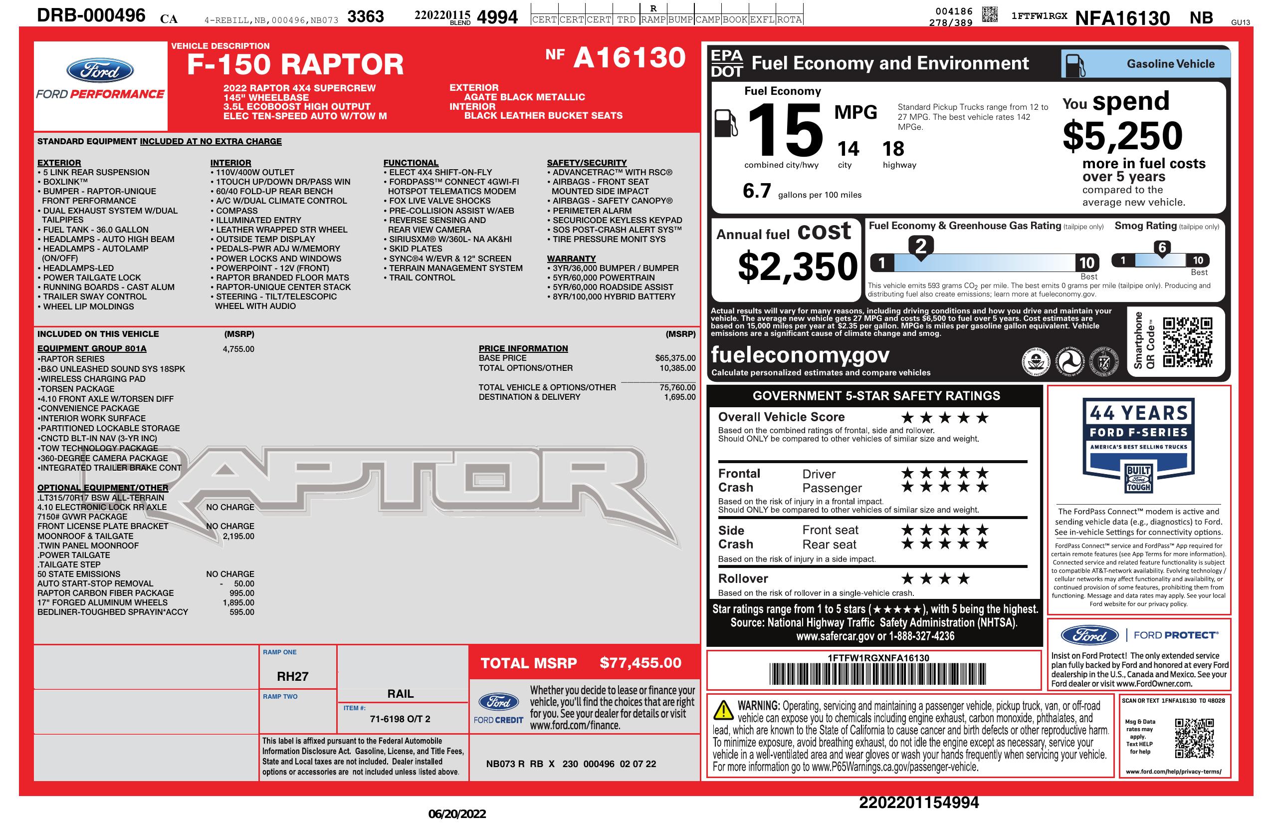 2022 Ford F 150 Raptor 4 Wd Super Crew 5.5' Box