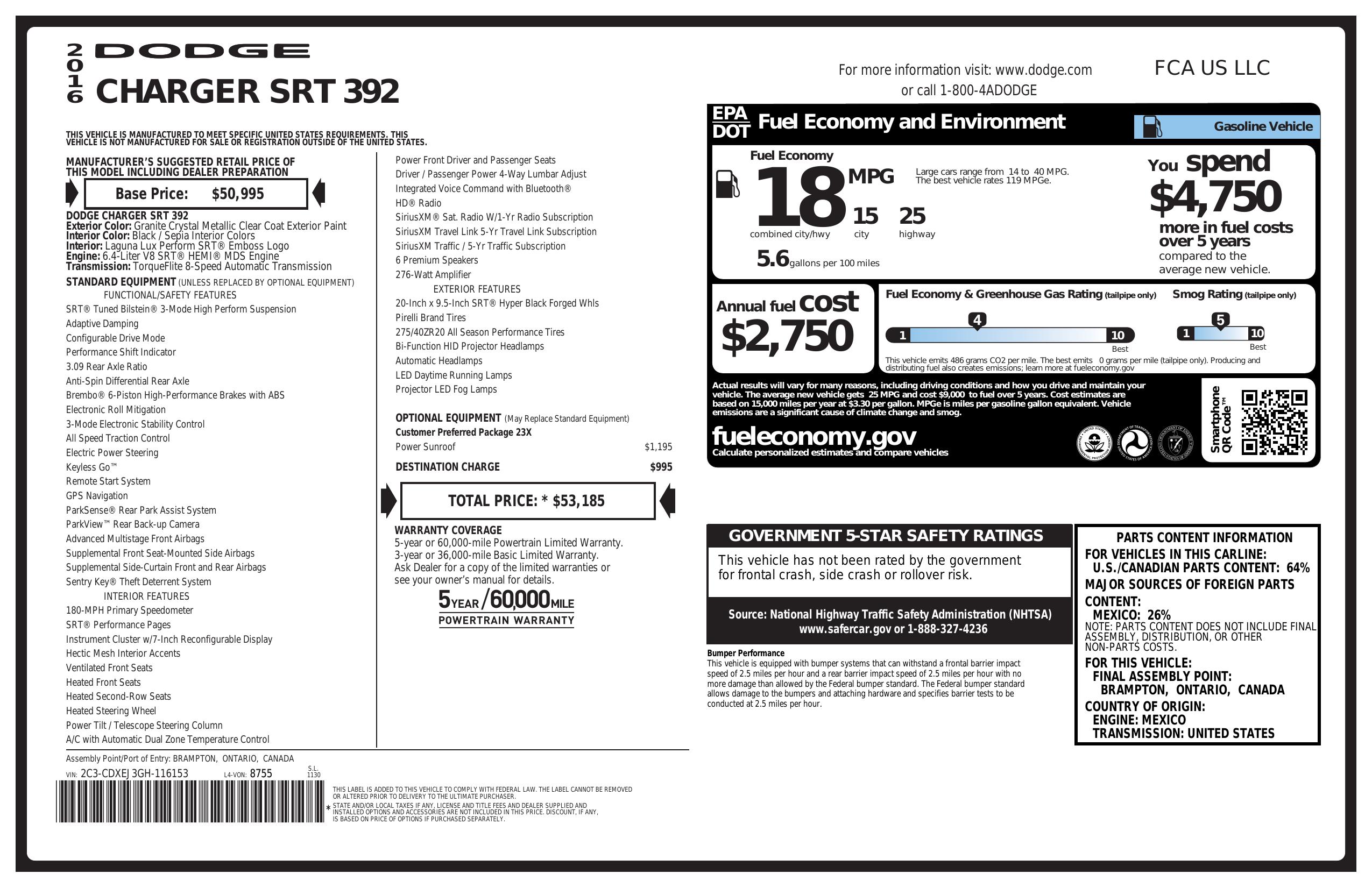 2016 Dodge Charger 4dr Sdn Srt 392 Rwd