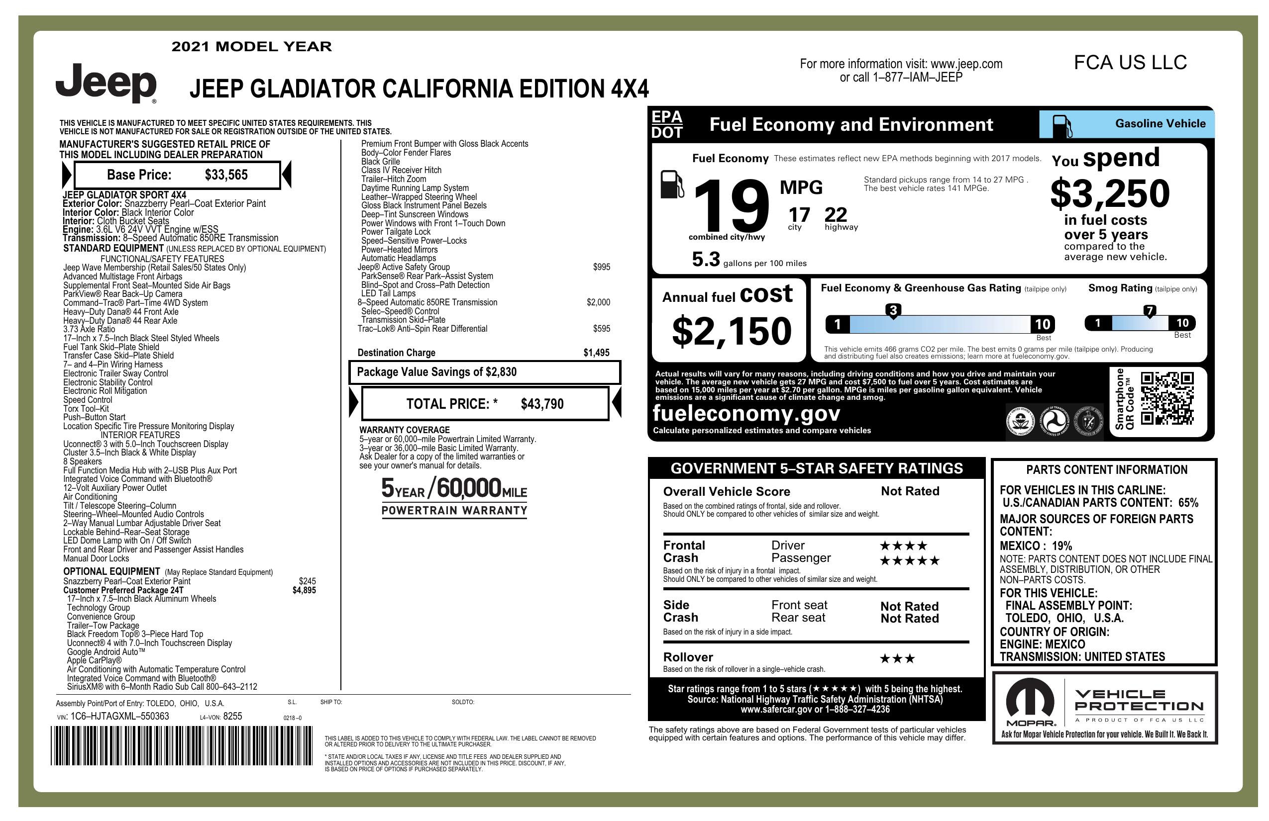 2021 Jeep Gladiator California Edition 4x4