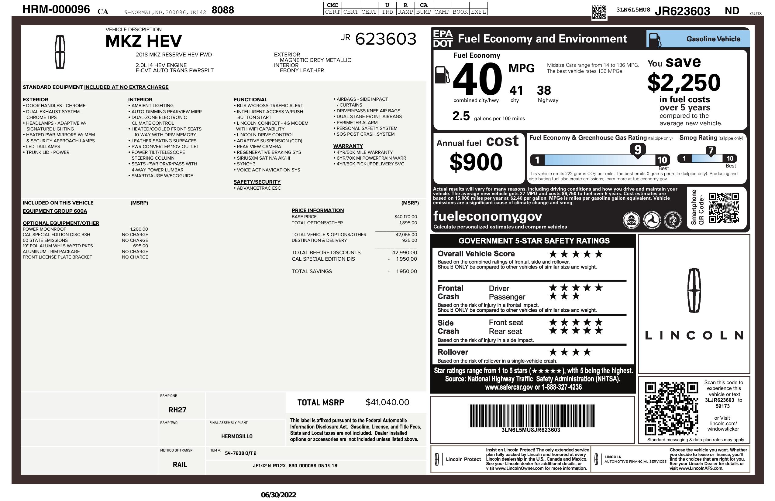 2018 Lincoln Mkz Hybrid Reserve Fwd