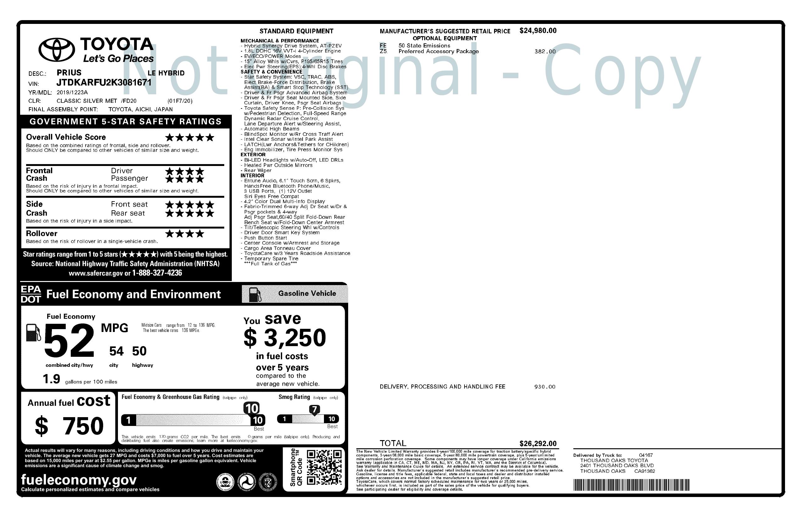 2019 Toyota Prius (Natl)