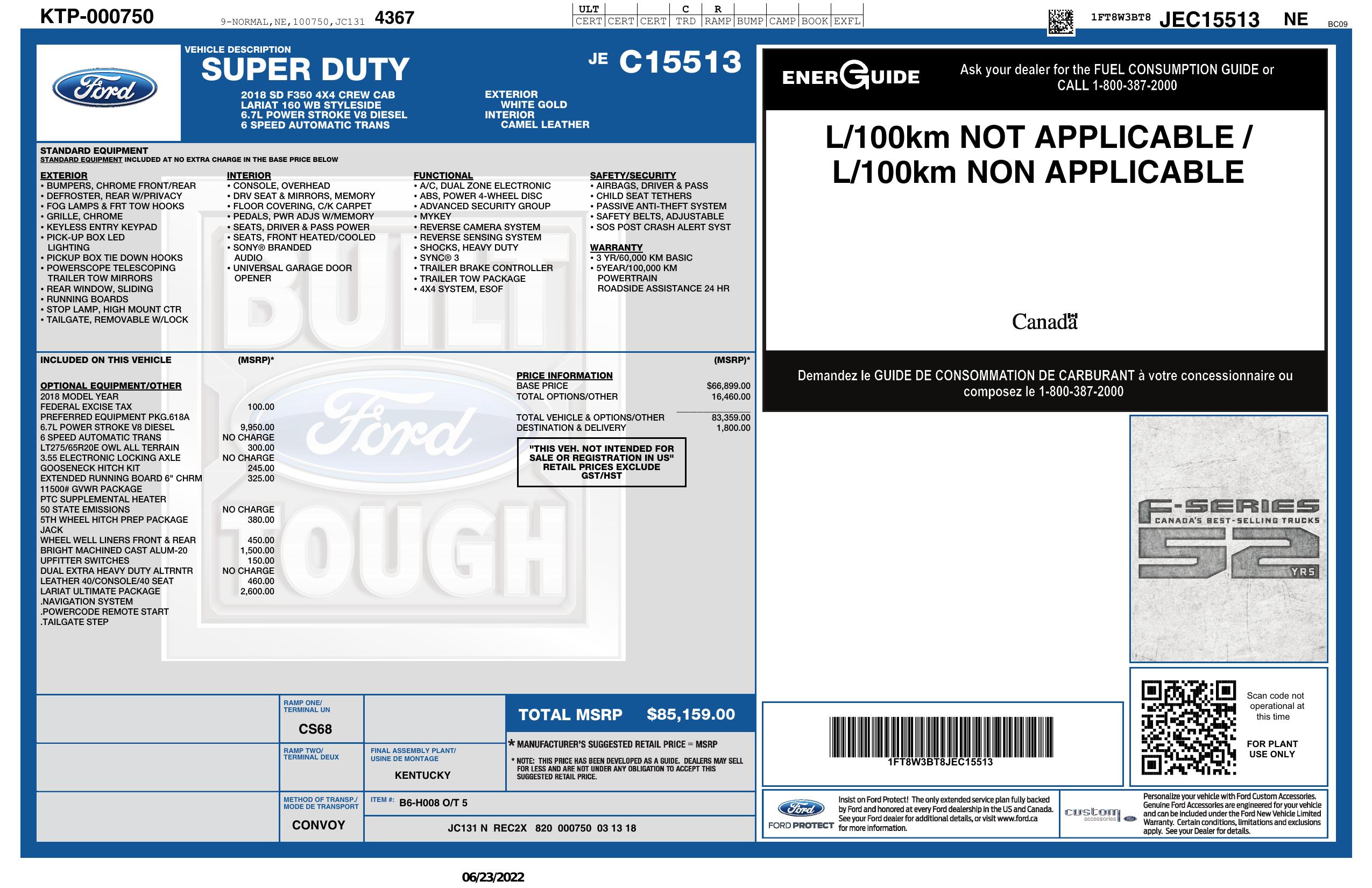 2018 Ford Super Duty F 350 Srw 4 Wd Crew Cab Box