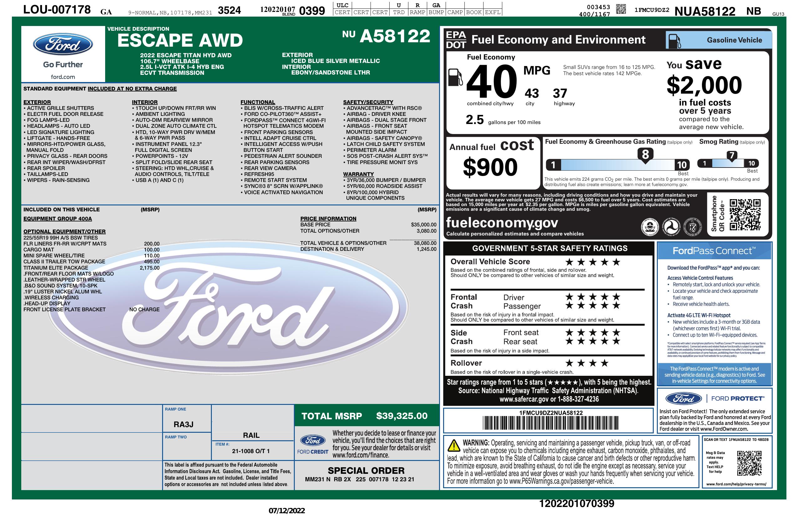 2022 Ford Escape Titanium Hybrid Awd