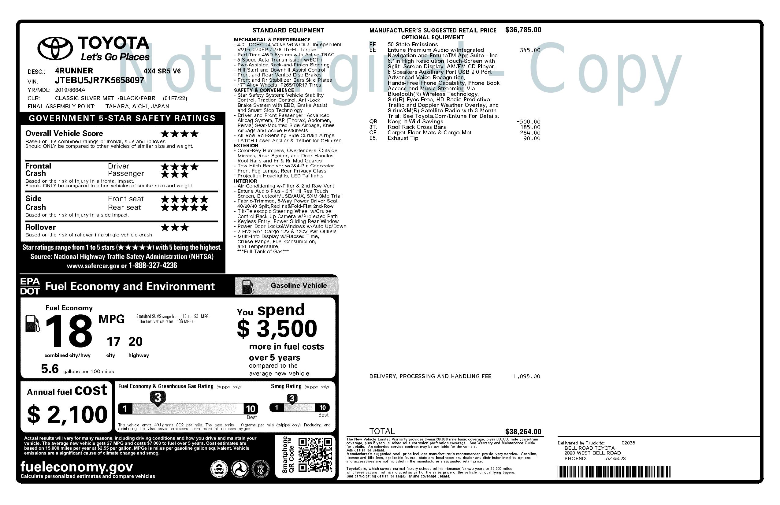2019 Toyota 4 Runner 4 Wd (Natl)