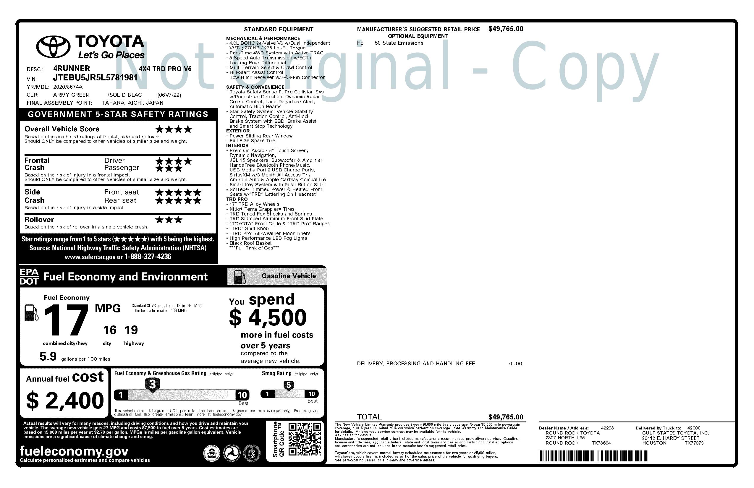 2020 Toyota 4 Runner 4 Wd (Natl)