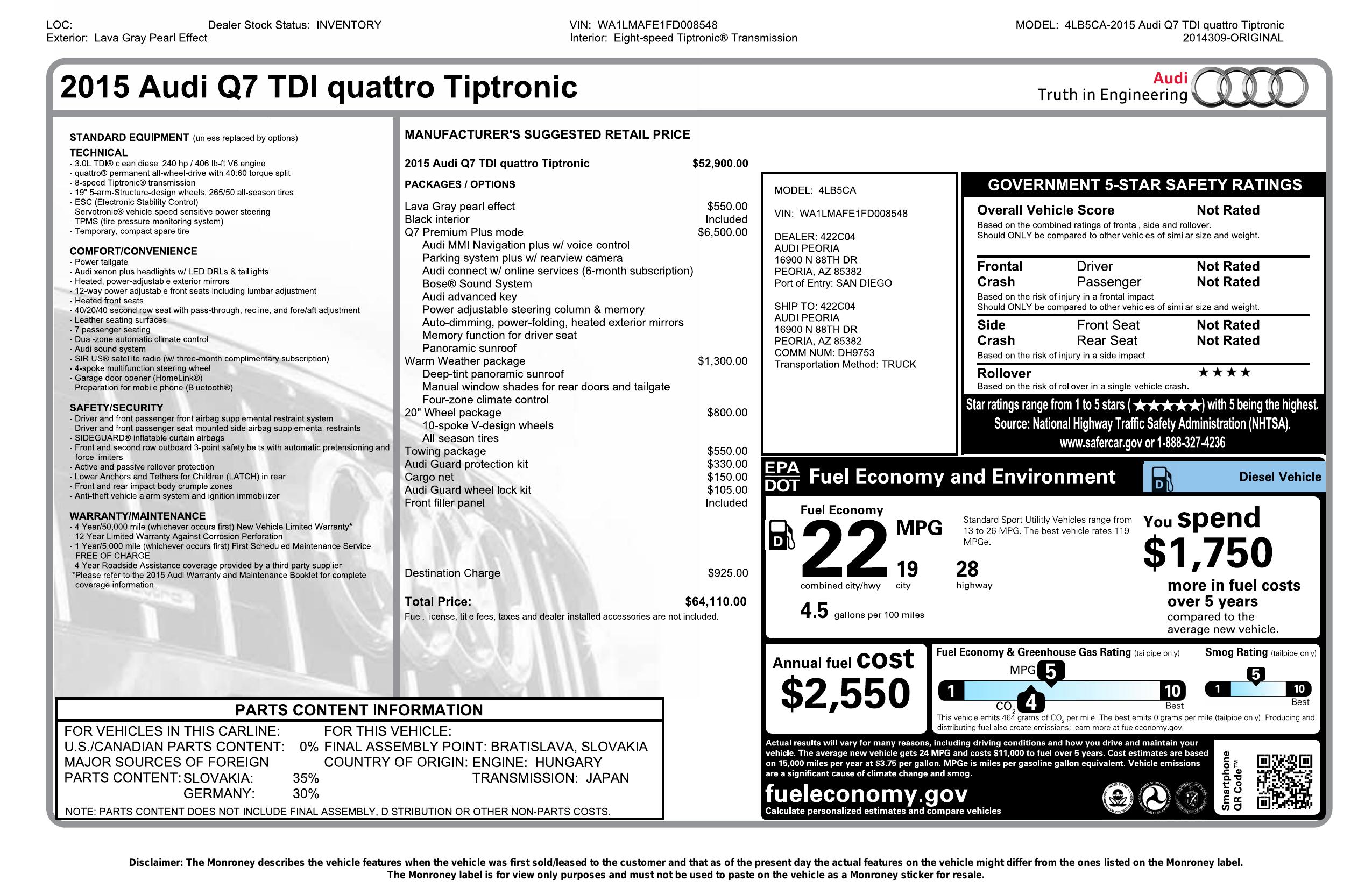 2015 Audi Q7 Quattro 4dr 3.0 L Tdi Premium Plus