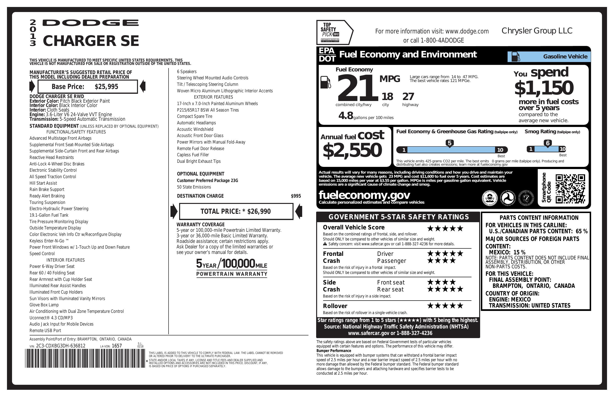 2013 Dodge Charger 4dr Sdn Se Rwd