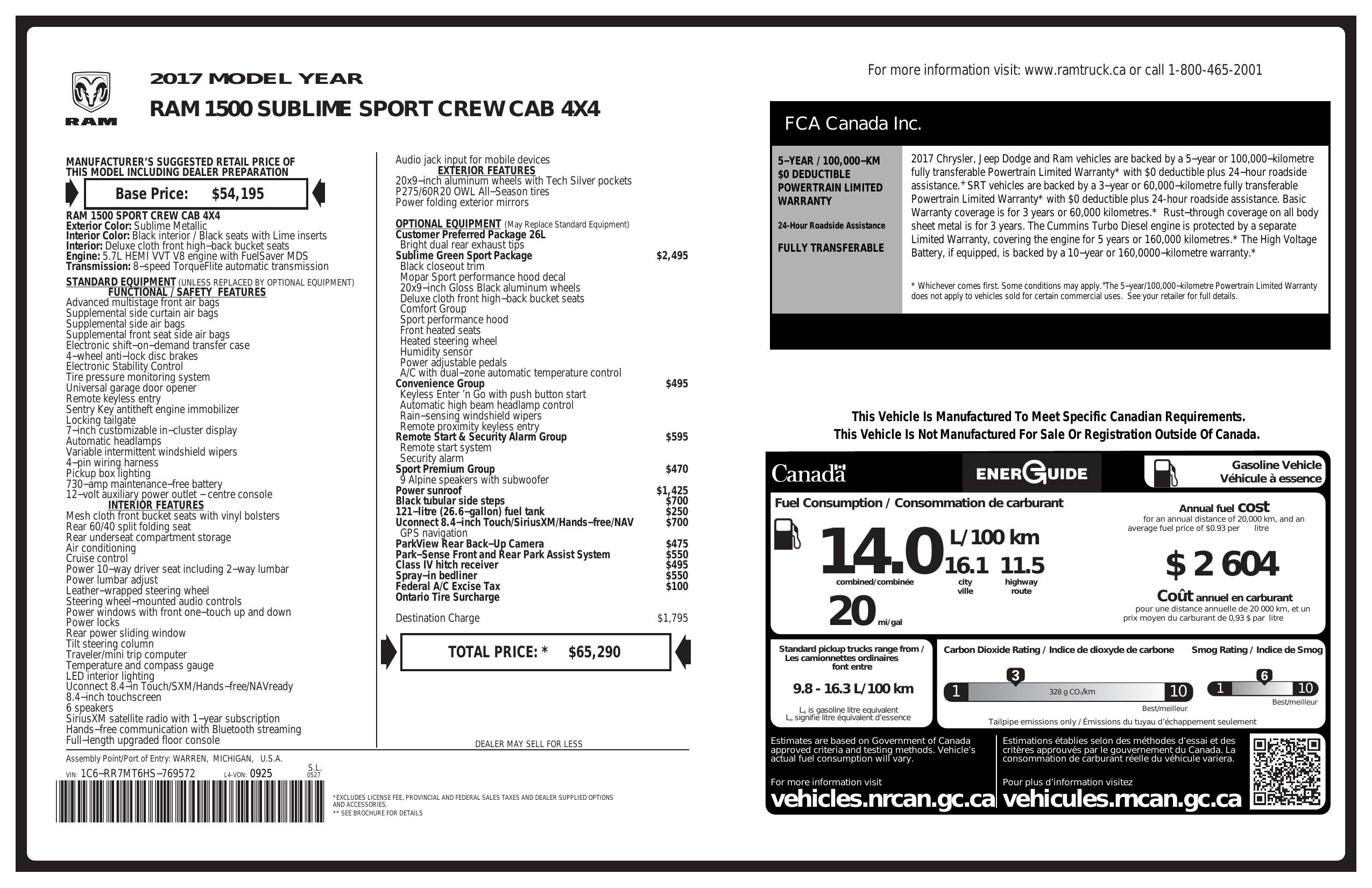2017 Ram 1500 4 Wd Crew Cab 140.5" Sport
